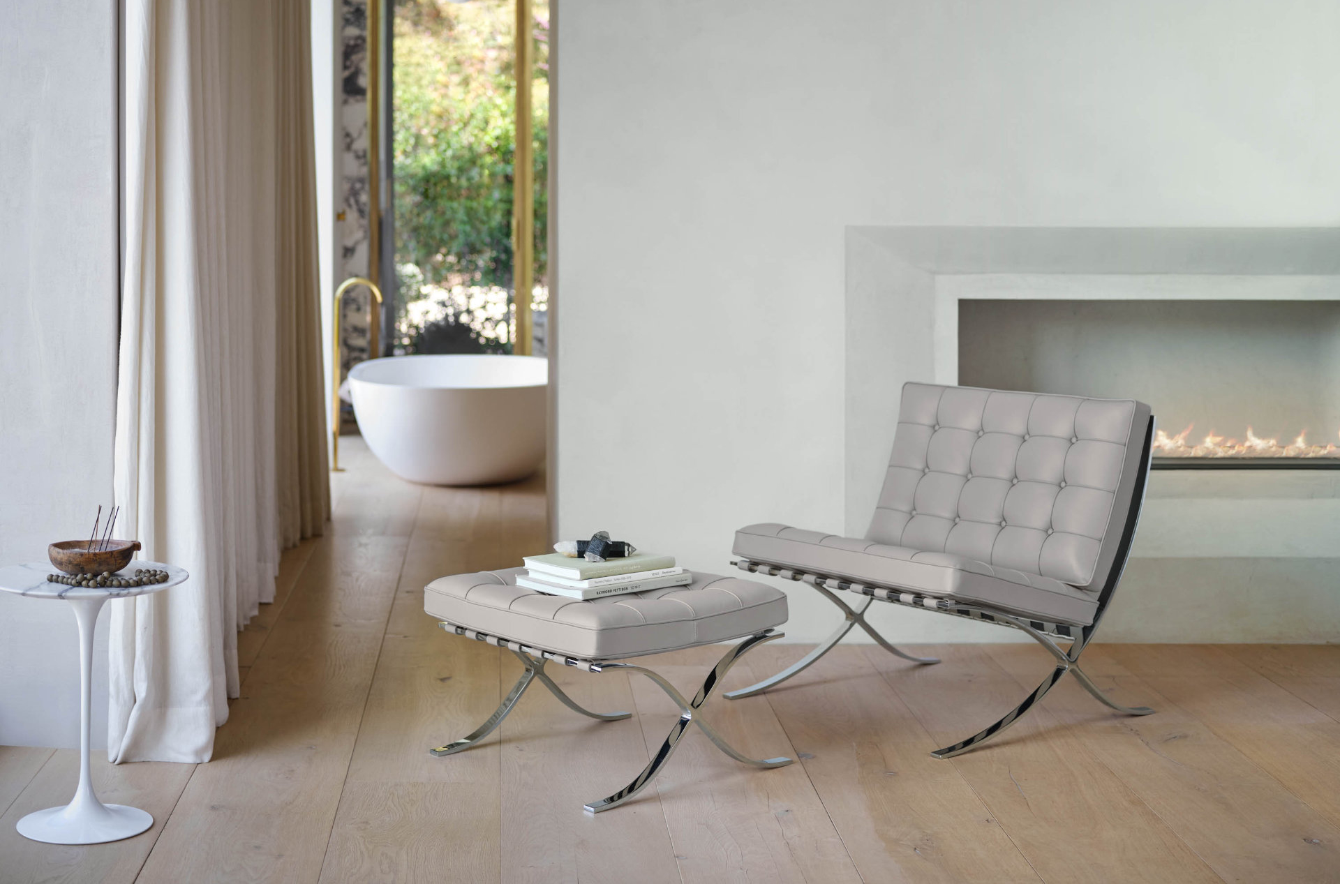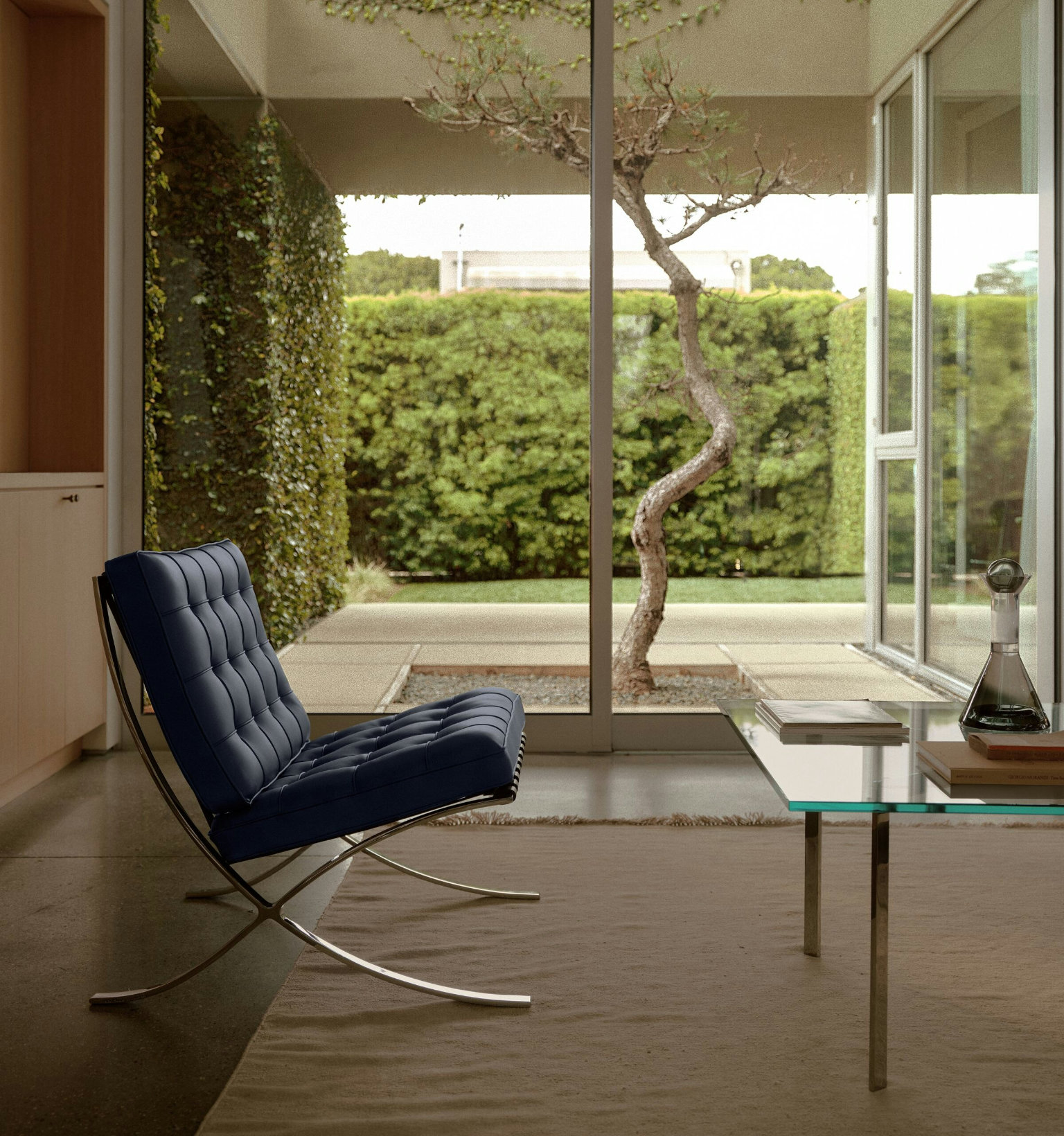 Uno de los objetos más reconocidos del siglo pasado y un icono del movimiento moderno, la elegancia sencilla y el perfil elegante de la silla Barcelona personifican la máxima más famosa de Mies van der Rohe: "menos es más". Desde el marco de acero inoxidable o cromo pulido a mano hasta los cuadrados de cuero individuales cuidadosamente cosidos entre sí, cada pieza de Barcelona es un homenaje a la unión del diseño moderno y la artesanía excepcional.