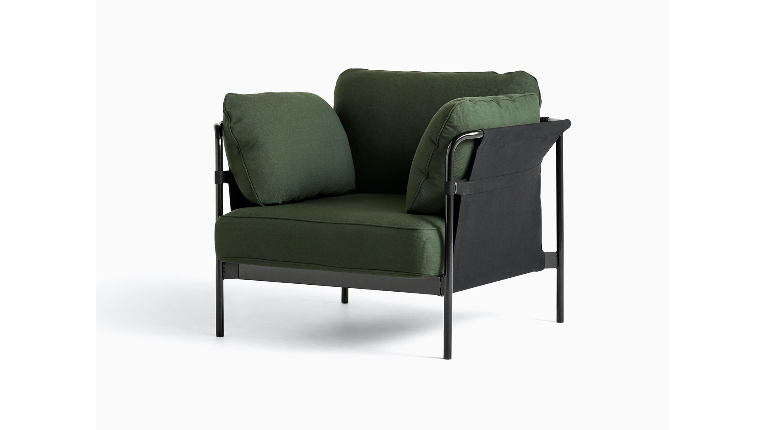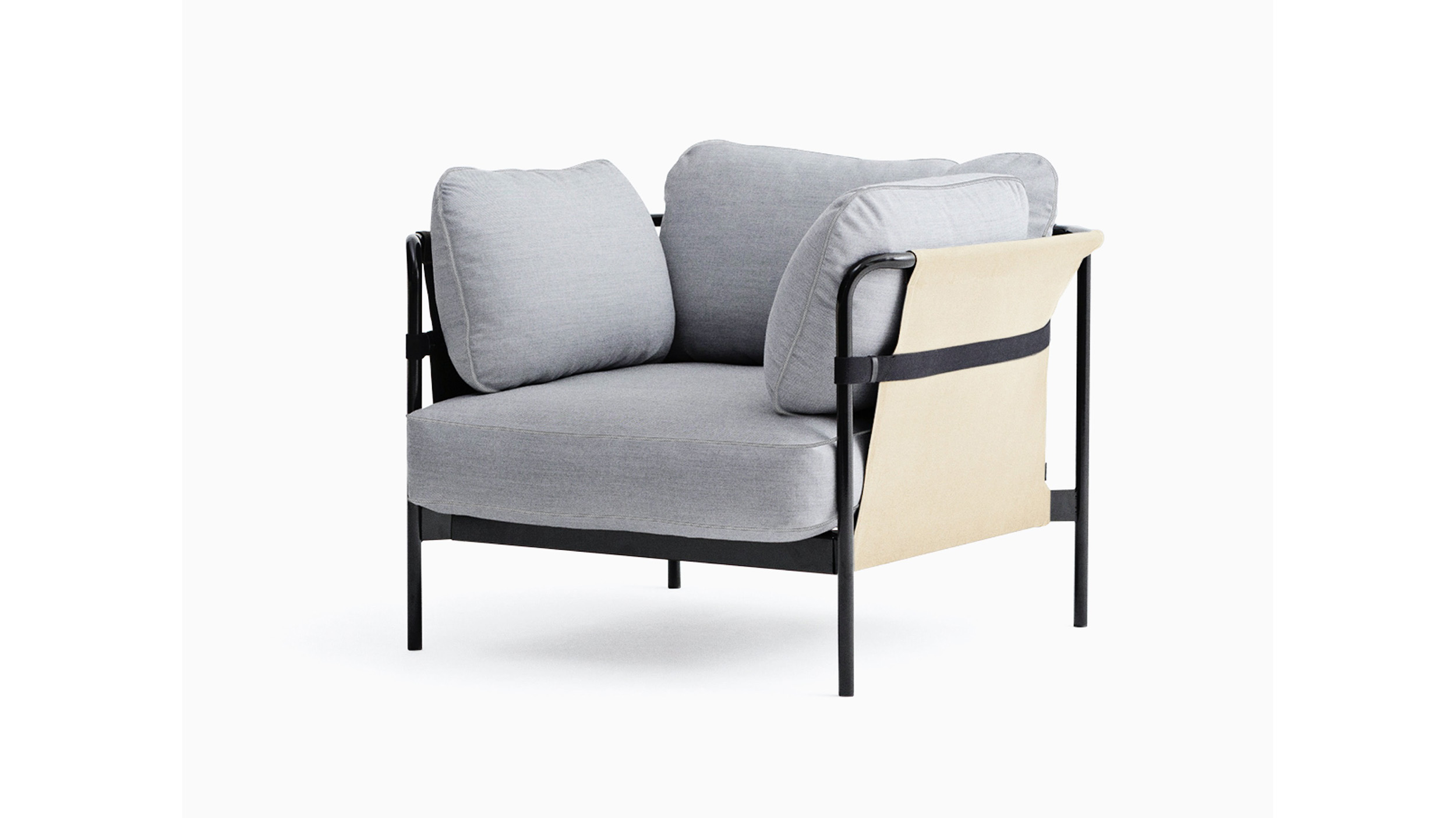 La silla lounge Can, expresión de un solo asiento del sofá Can de Ronan y Erwan Bouroullec, renueva la idea general de la sillería lounge y convierte algo esencialmente complicado en algo simple, relajado y accesible. La silla viene en un paquete plano y puede ensamblarse fácilmente en el hogar a partir de tres elementos básicos: estructura, cubierta y cojines.
