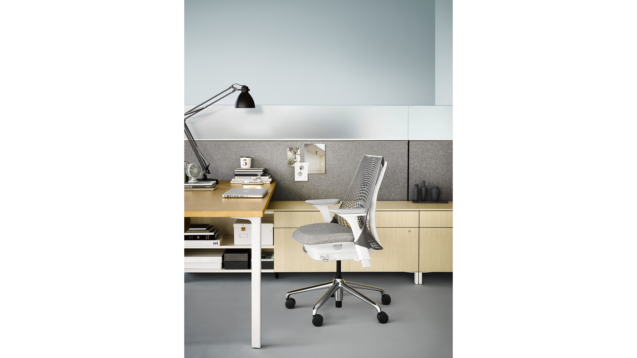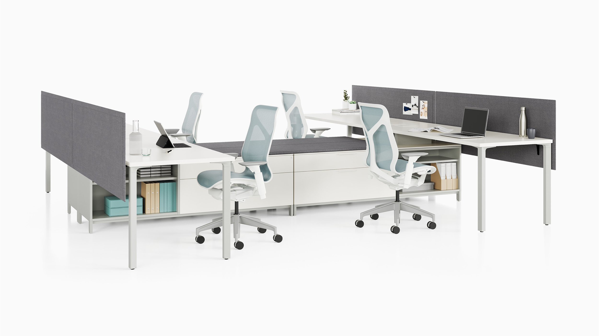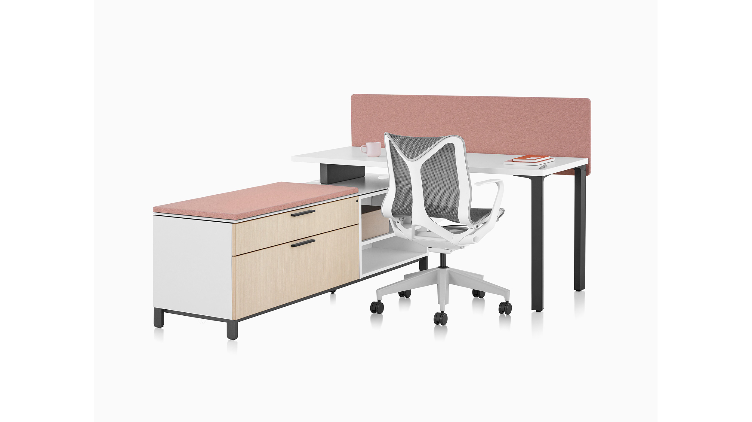 Canvas Storage es un almacenamiento multifuncional que en ruta energía y datos y guarda elementos personales y herramientas de trabajo. Más que un lugar para guardar sus snacks, el sistema soporta superficies de trabajo y brinda sillería para colegas que se detienen a charlar. Las múltiples opciones de materiales armonizan con el resto de Canvas Office Landscape.