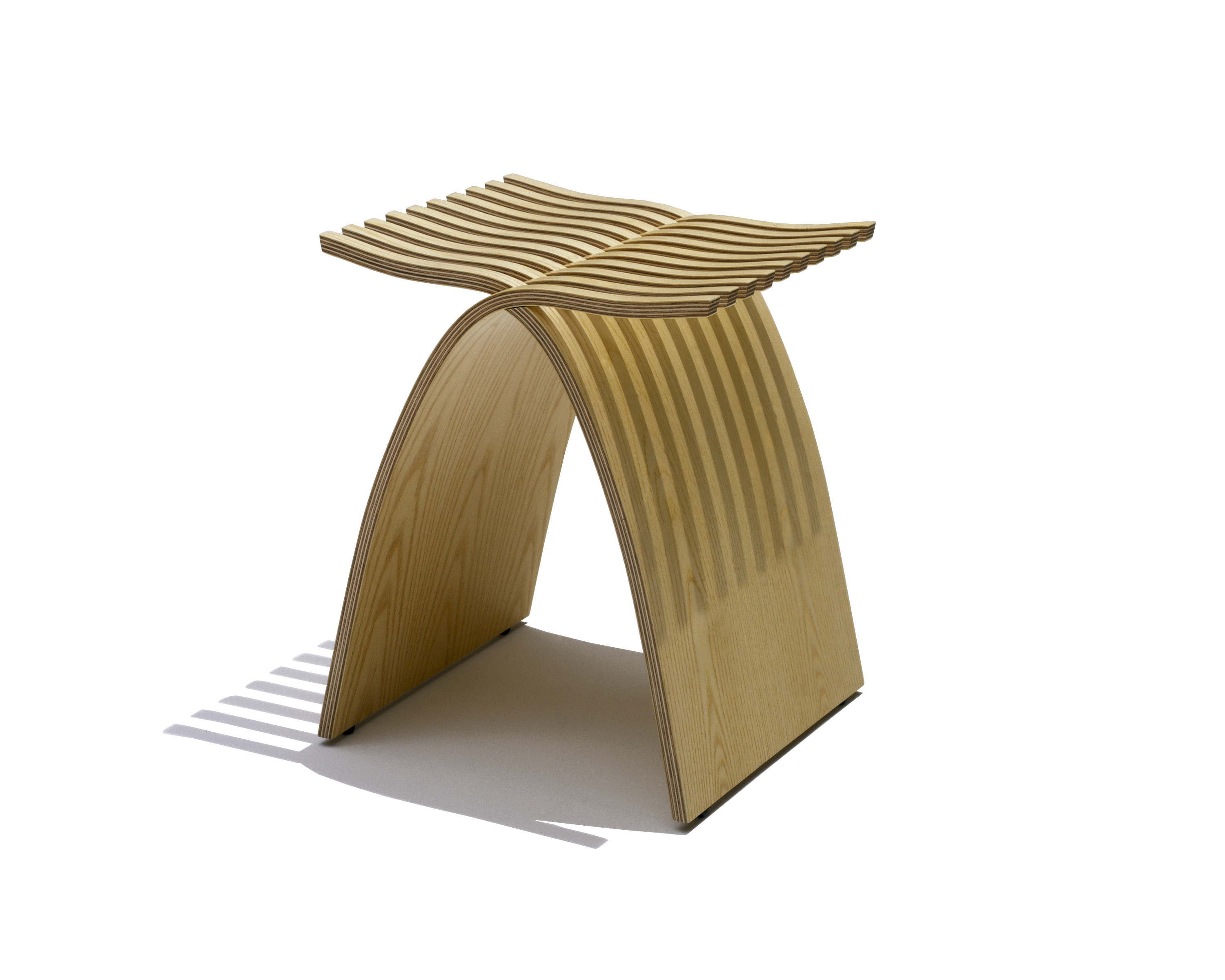 El taburete Capelli está formado por dos piezas de laminado idénticas, cada una con "dedos" ondulantes en la parte superior que se entrelazan sin herramientas ni sujetadores. Es una estructura ingeniosamente estable y elegante que resulta agradable para sentarse y es algo simplemente hermoso de observar.