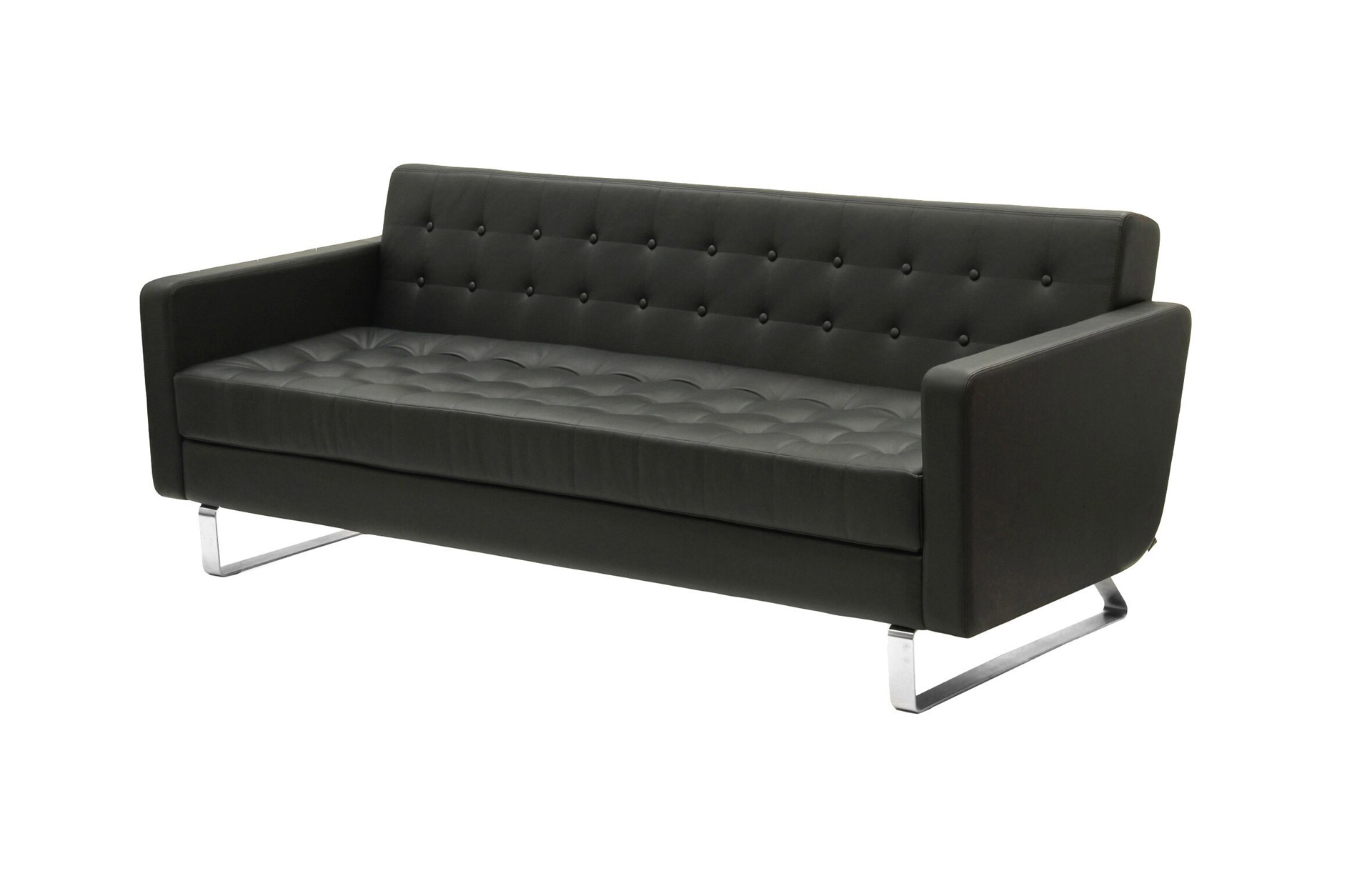Con un perfil reclinado, el asiento y el respaldo acolchonados capitoné, el sofá Clyde de naughtone tiene un aspecto fino y despejado. Diseñado para la comodidad con un aire formal, su forma compacta está disponible en dos tamaños, ambos con brazos o sin ellos, y ofrecen la opción de patas de madera maciza o base en patín de acero inoxidable.