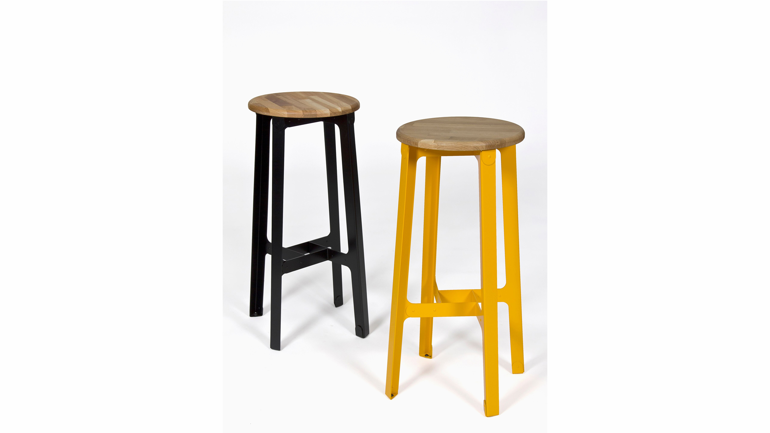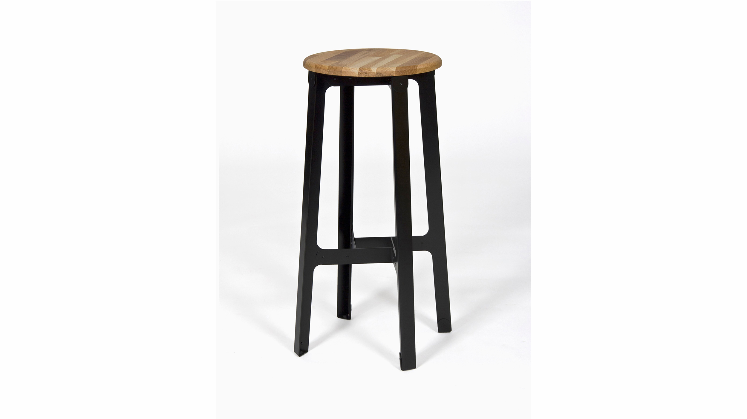 Fabricado en acero plegado con sistema de corte de láser y ensamblado con remaches de aluminio de la industria aeronáutica, el taburete Construct representa el paradigma del diseño honesto. Equilibrado por la presencia del asiento de madera maciza, su aspecto industrial funciona a la perfección en una amplia diversidad de entornos. El revestimiento contra polvo de la base viene en varios colores. Disponible en tres alturas.