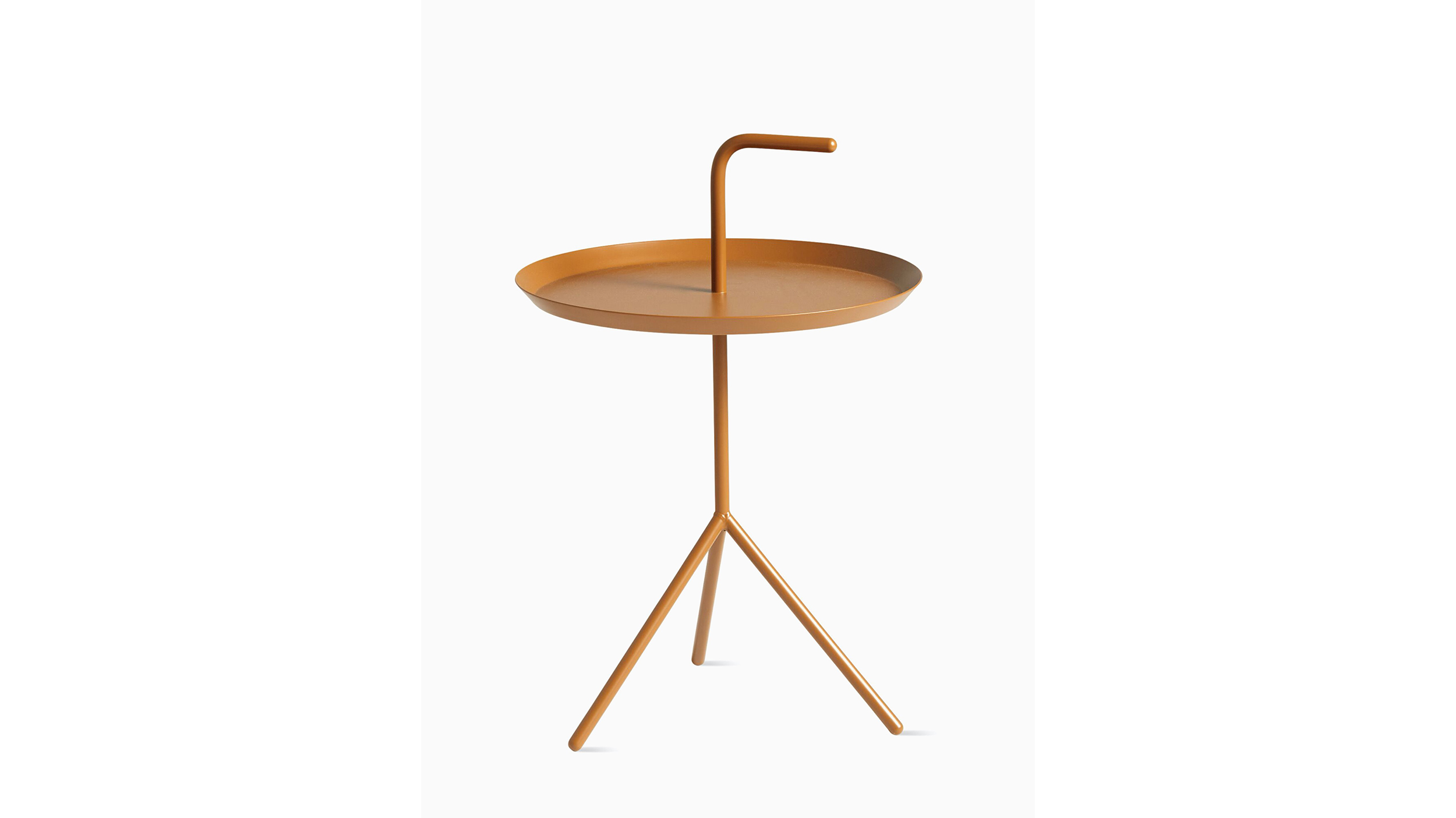 Acertadamente llamada “Don’t Leave Me” (No me dejes) y comúnmente abreviada “DLM”, esta mesa auxiliar portátil tiene una manija que permite transportarla de una sala a la otra. Si bien tiene una estructura liviana, sus patas inclinadas aportan gran estabilidad. Disponible en tamaño estándar o XL.