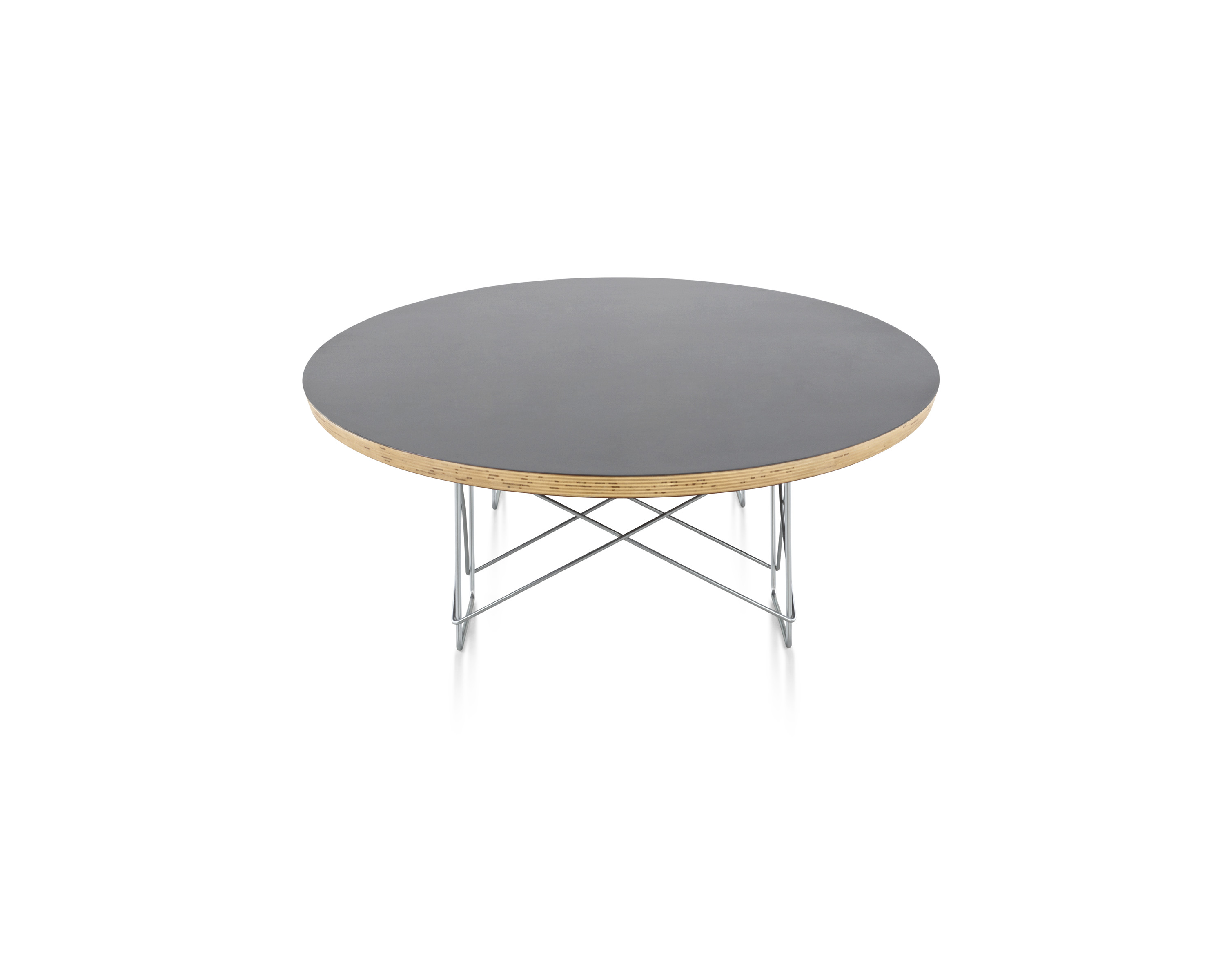 Con su perfil alargado y de poca altura, la mesa elíptica con base de alambre Eames se ubica dramáticamente frente a un sofá alargado o en el medio de un grupo de sillas. Crea un escenario sorprendente para exhibir jarrones de fat lava de mediados de siglo, flores frescas, revistas o un libro especial en un living, una sala de espera, un área de recepción o un área de descanso para ejecutivos. Disponible con laminado negro o blanco, esta mesa marca una diferencia por su solidez y belleza dondequiera que esté.