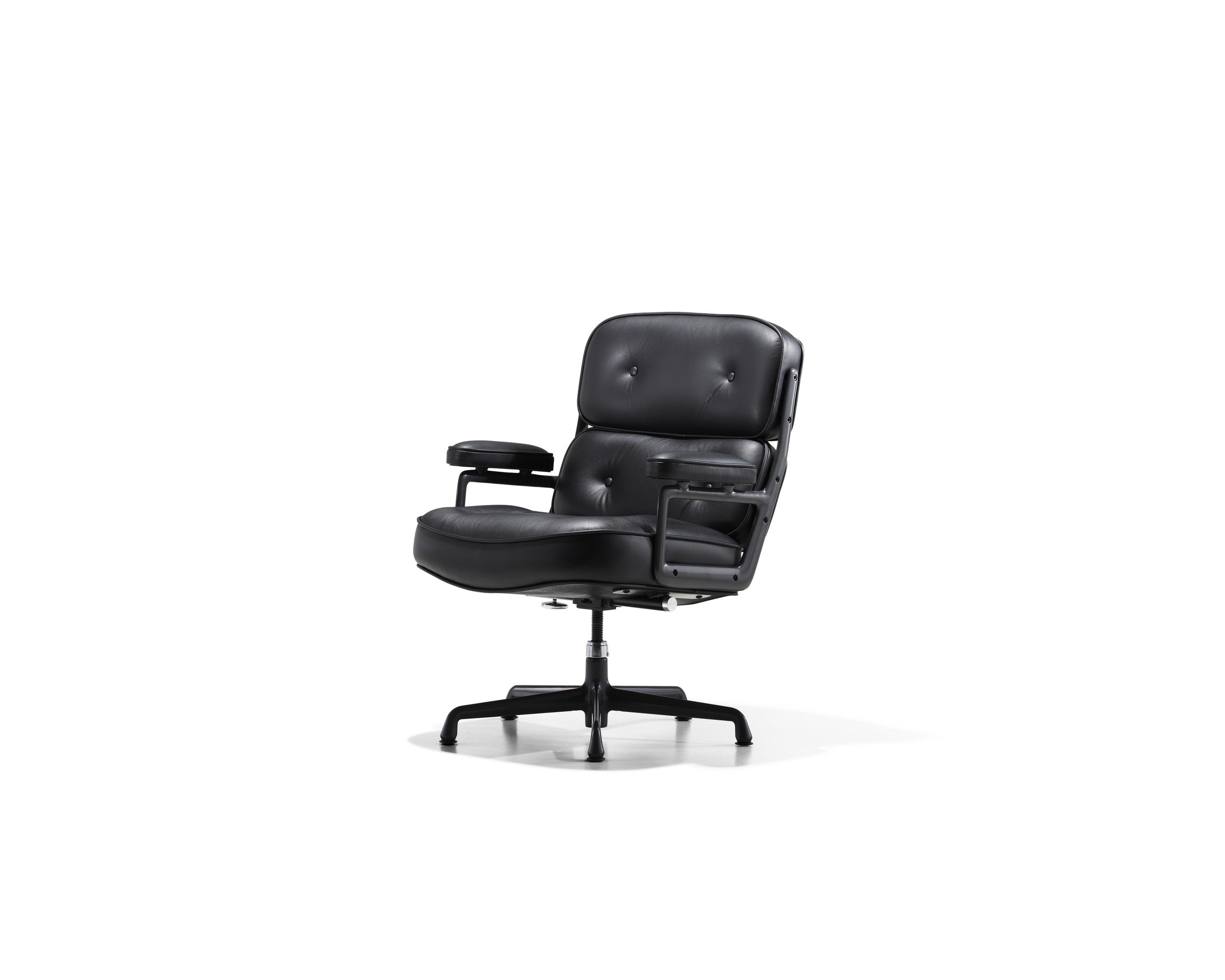 Esta silla lujosa es un ejemplo de la convicción de Charles Eames de que "los detalles no son detalles; crean el producto". De tamaño generoso, la silla ejecutiva de trabajo presenta una estructura y base de aluminio liviana y tiene finos detalles de cuero o tapicería de géneros, acentuada con botones cubiertos y detalles en los bordes típicos de los muebles finos tradicionales.