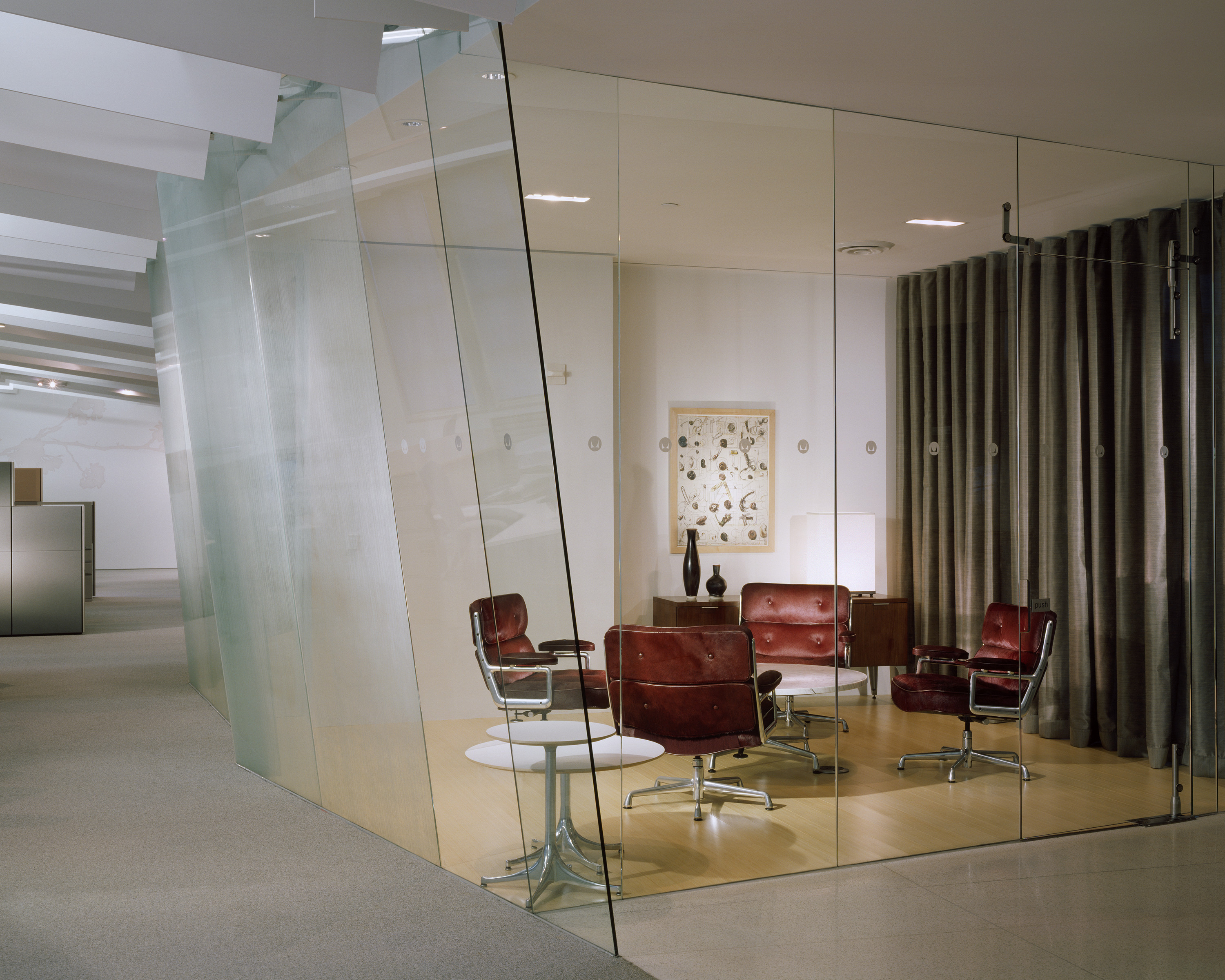 Las sillas de trabajo para ejecutivos Eames, también conocidas como sillas Time-Life, se crearon, conjuntamente con los taburetes de nogal Eames, para tres salas de estar del edificio Time-Life en 1960.