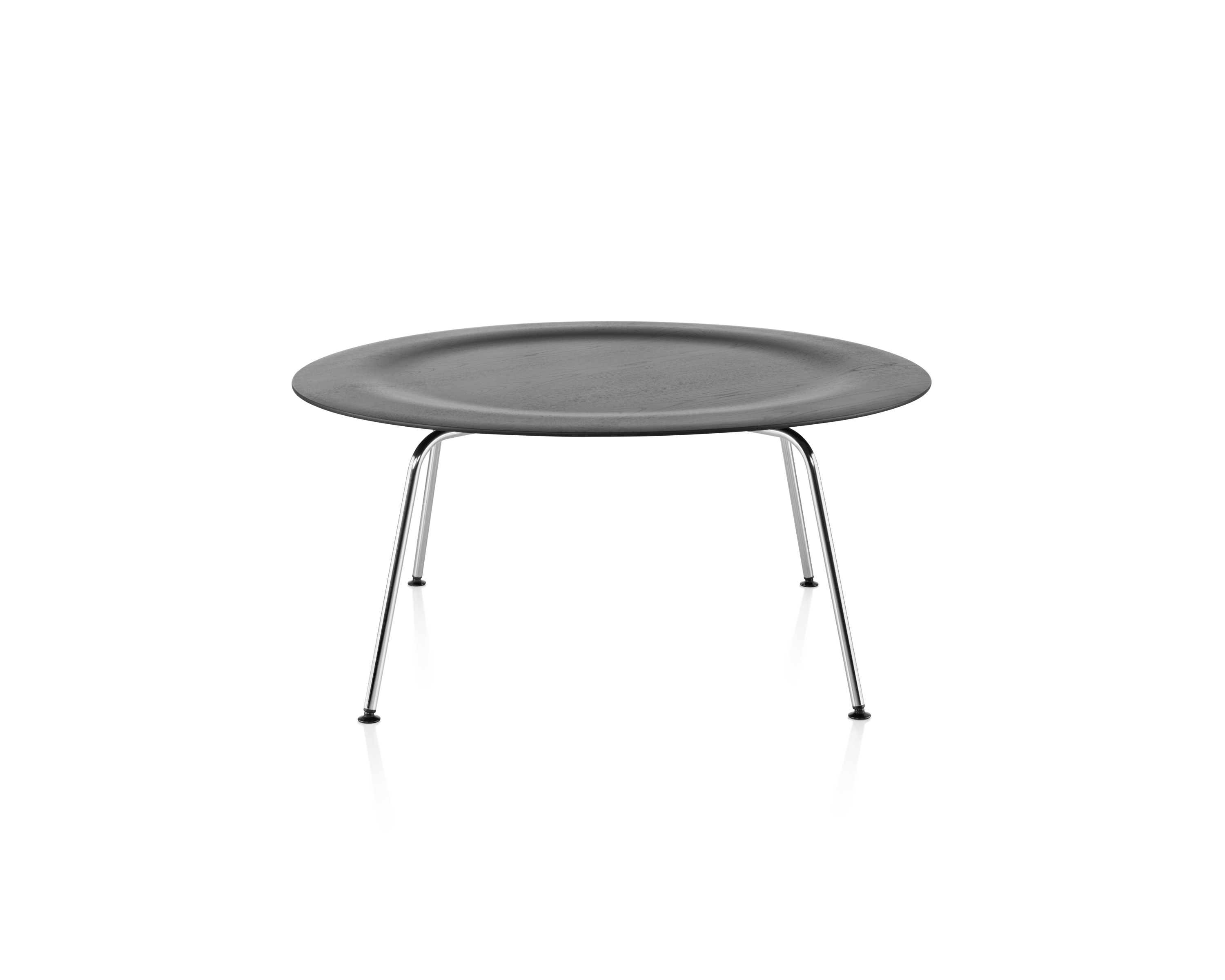 La superficie de ambas versiones es un ejemplo elocuente del espíritu del diseño inicial de los Eames. La tapa redondeada, levemente dentada, crea un perfil esbelto que forma una pieza central simple y sorprendente en cualquier espacio residencial o comercial. Puede estar rodeada de tumbonas de madera laminada moldeada o bien compensar un área de asientos con un sofá.