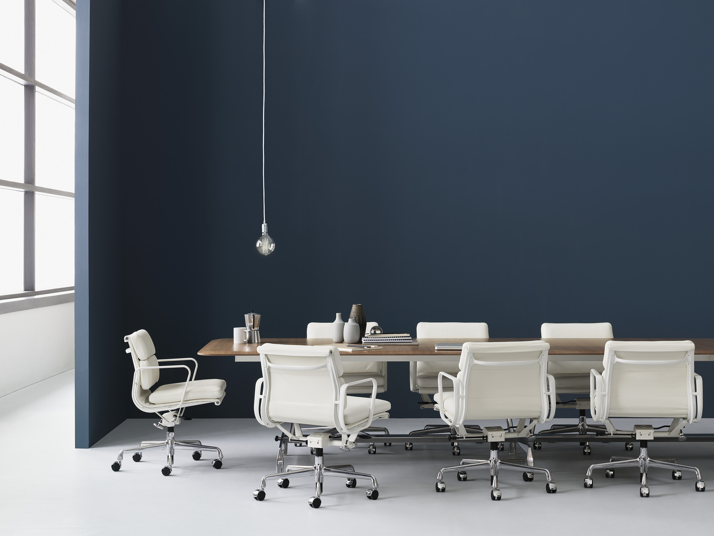 Los almohadones emparentados del Aluminum Group Eames ostentan la misma estampa distintiva de Charles y Ray Eames. Silueta sofisticada, refinada y elegante. Las sillas Soft Pad están disponibles con nuevos colores, materiales y bases que les permiten adaptarse a hogares y oficinas.