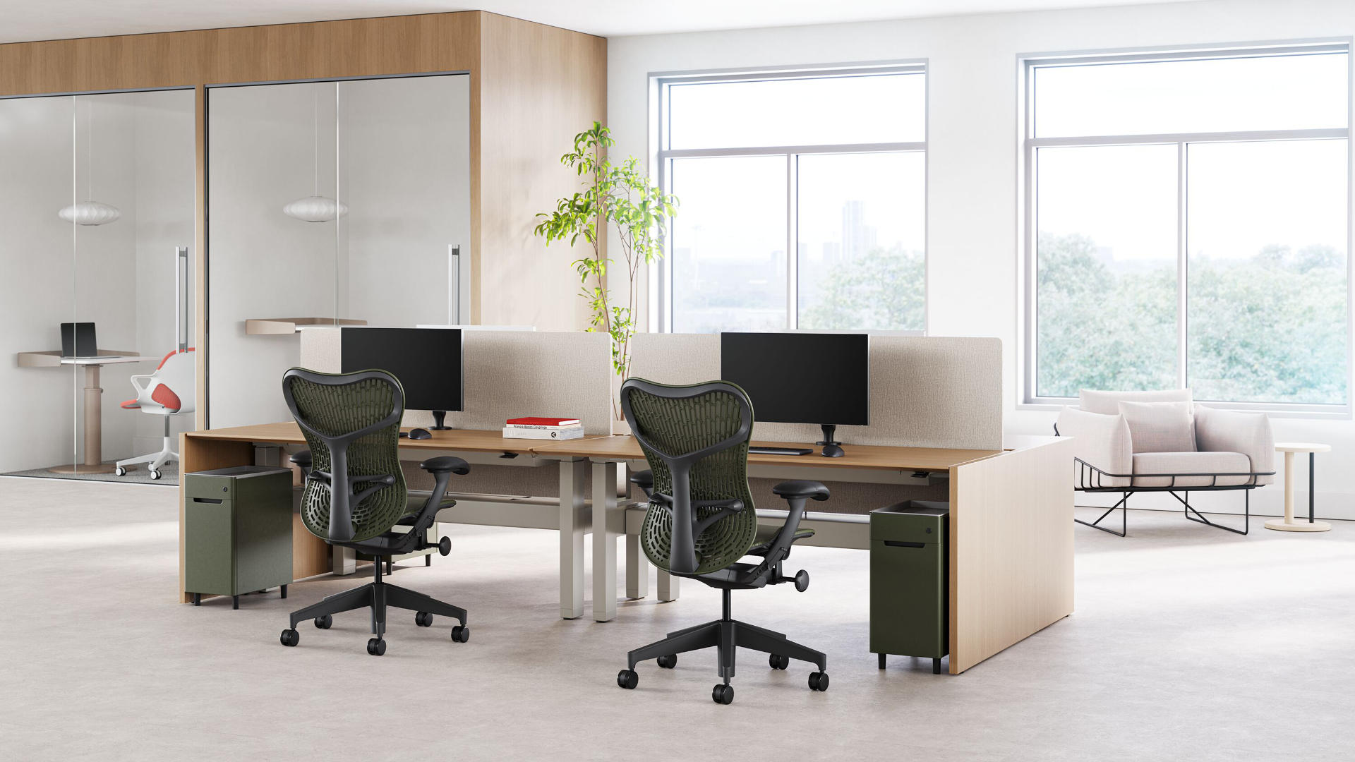 El diseño esbelto de Mirra 2 aporta un perfil sofisticado y ligereza visual a cualquier espacio.
