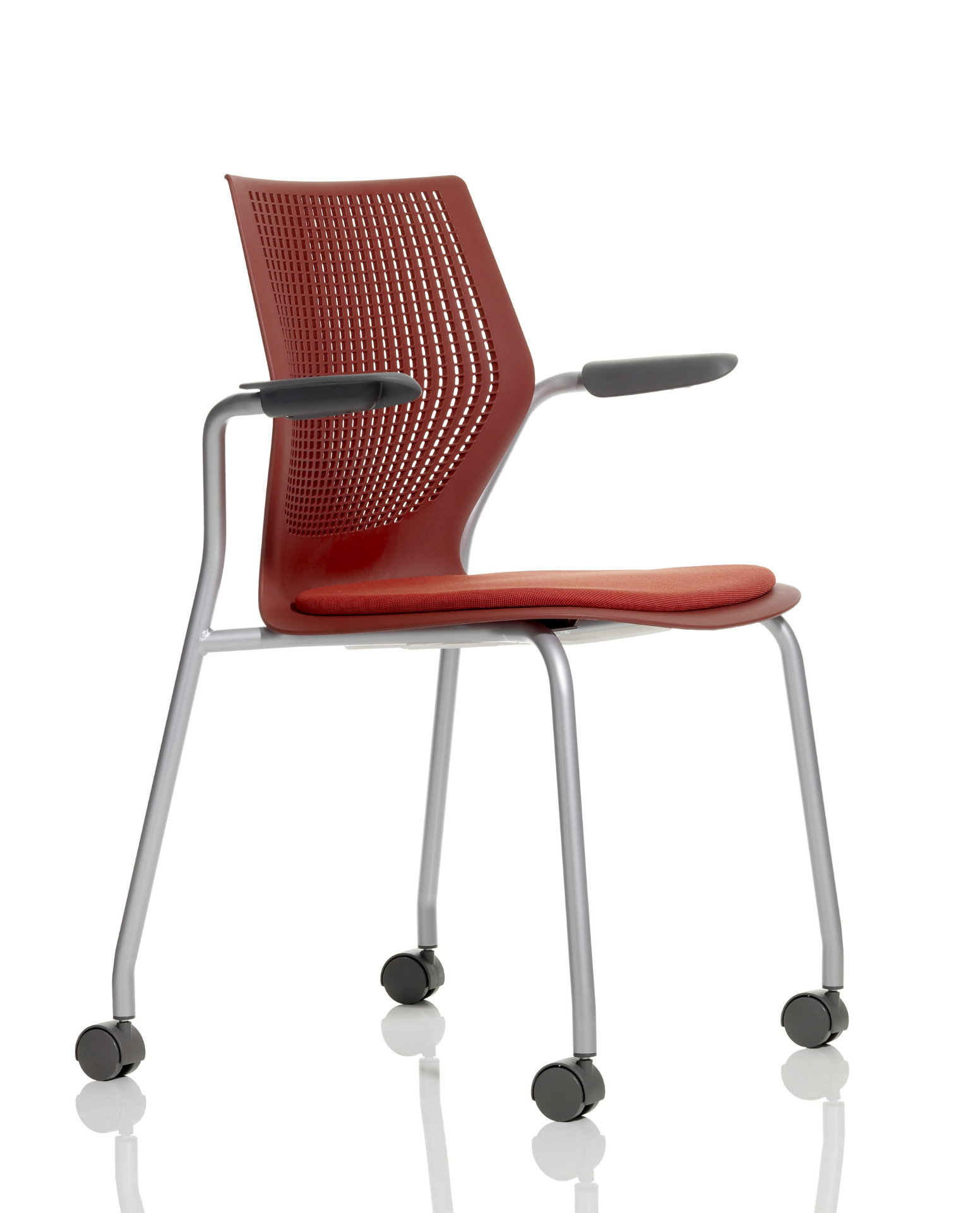 El respaldo completo y curvado permite el movimiento de la parte superior del cuerpo y sostiene la parte inferior de la espalda para posturas erguidas e interactivas, mientras que un asiento suavemente contorneado con esquinas redondeadas y un diseño de brazo en voladizo le permite cambiar de posición fácilmente. Los brazos cuentan con almohadillas contorneadas para apoyarse cuando se sienta de lado.