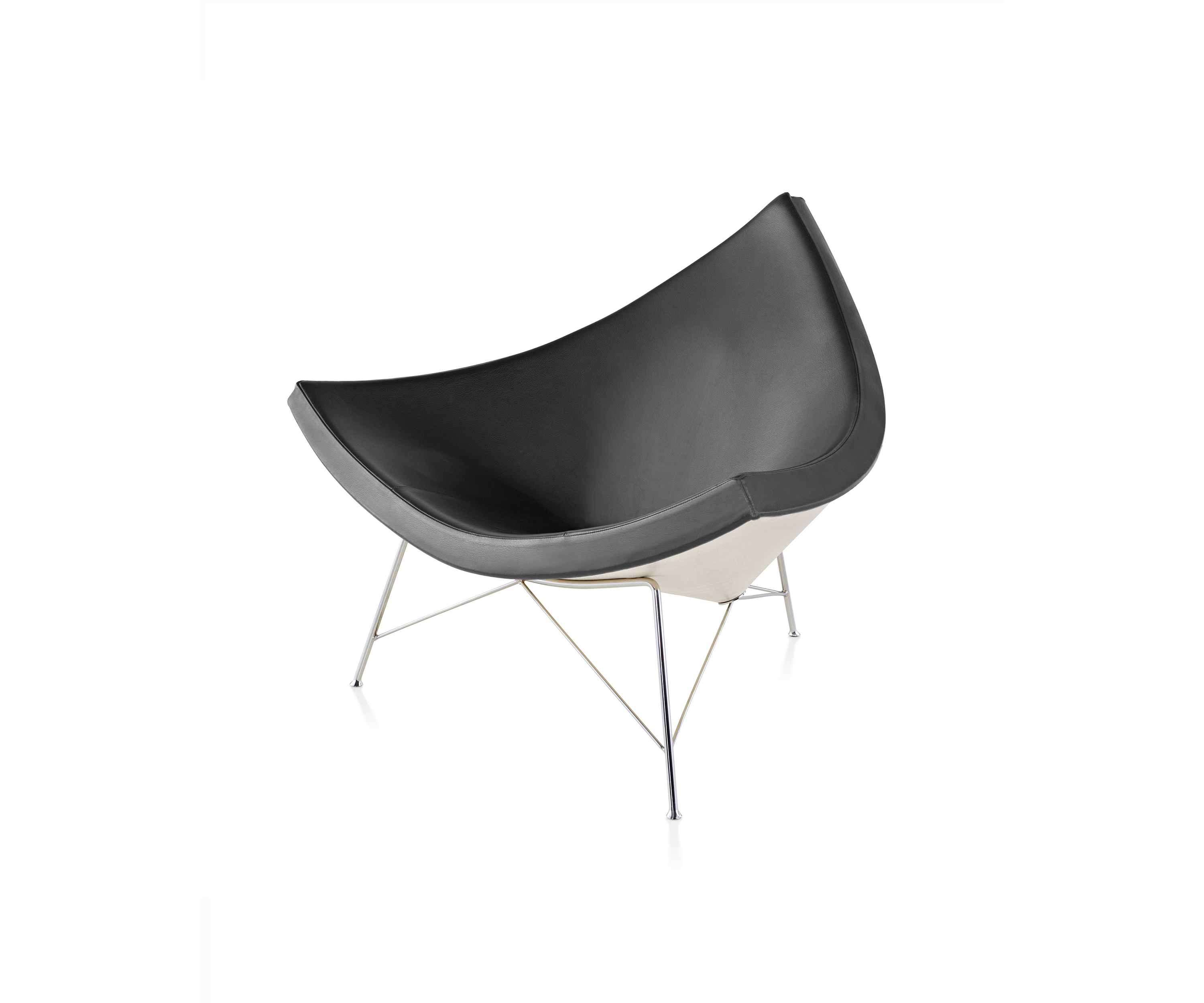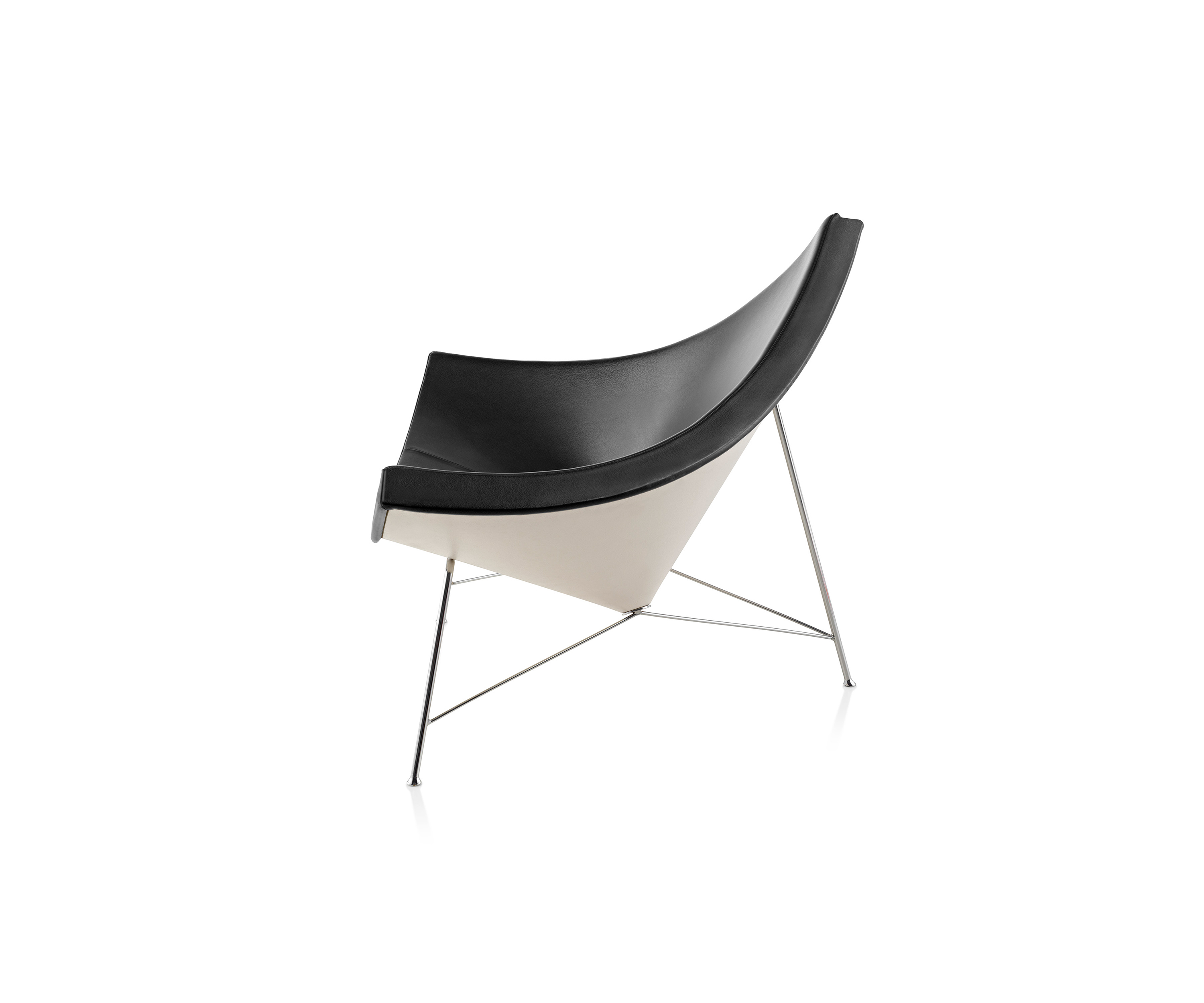 Si la idea de sentarse en una rebanada de coco hace que su espalda se ponga tensa, siéntese en esta silla. George Nelson dijo que desarrolló la silla "para otorgar la comodidad de una tumbona, junto con una gran libertad de movimientos". Y lo logró. Con sus laterales poco profundos y curvas atractivas, la silla está diseñada para permitir que se siente en cualquier posición y se mueva con una comodidad sorprendente... y relajante.