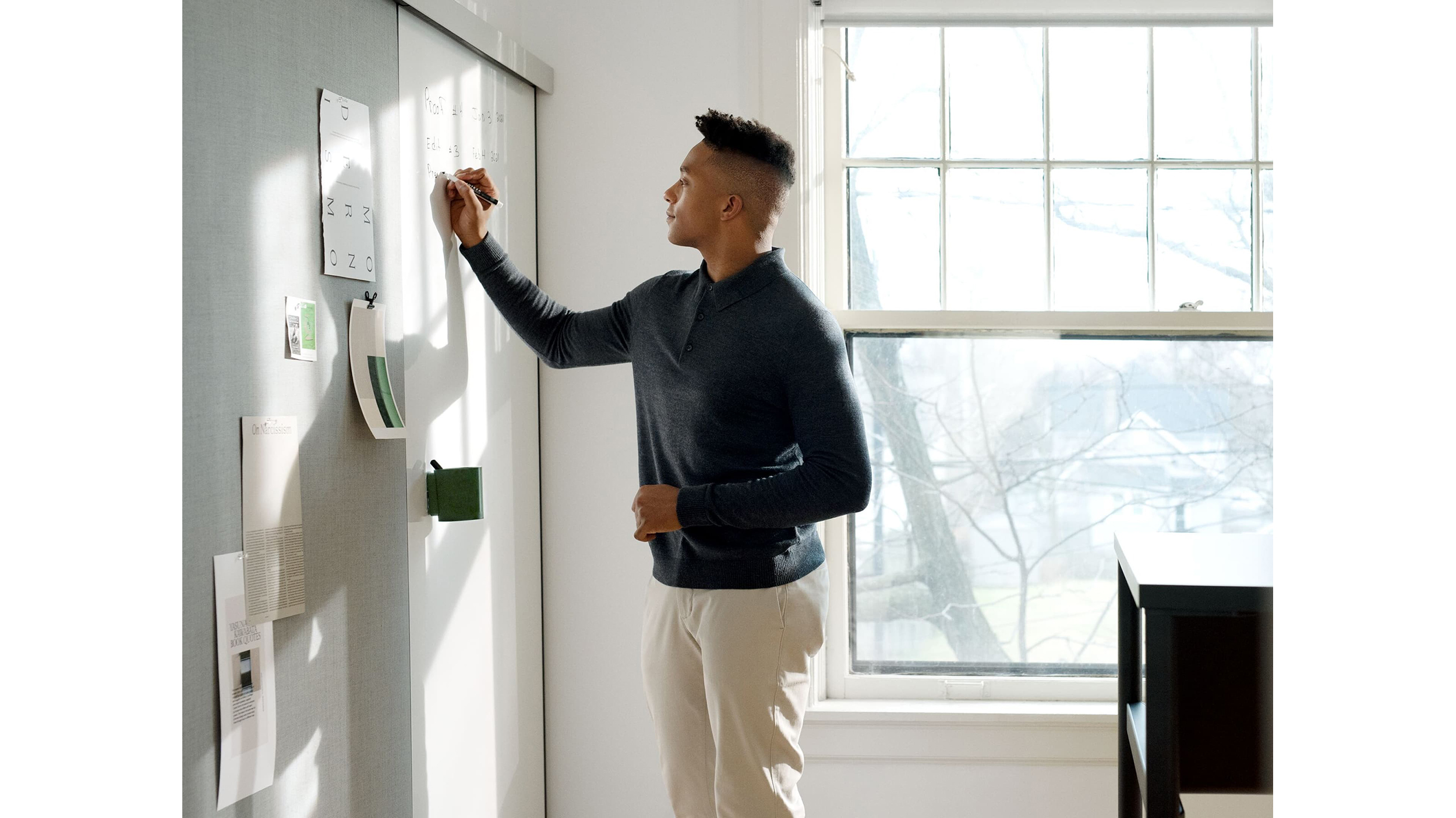 El vaso de marcadores OE1 se ha diseñado para lograr una colaboración flexible. Se adhiere fácilmente a las pizarras blancas y a otras superficies, y luego puede moverse a otro sitio donde sea necesario. Parte de la Colección espacio de trabajo OE1.