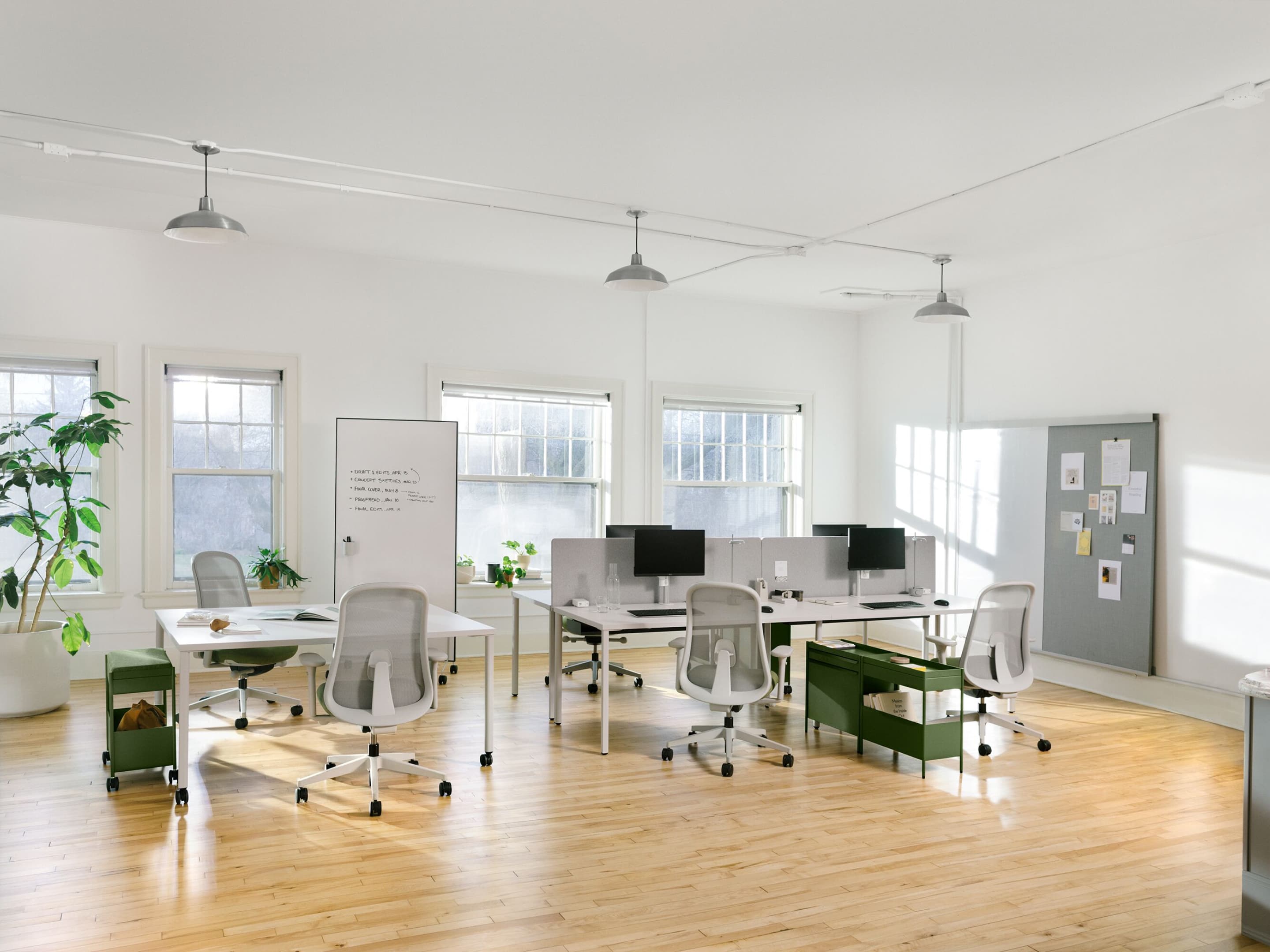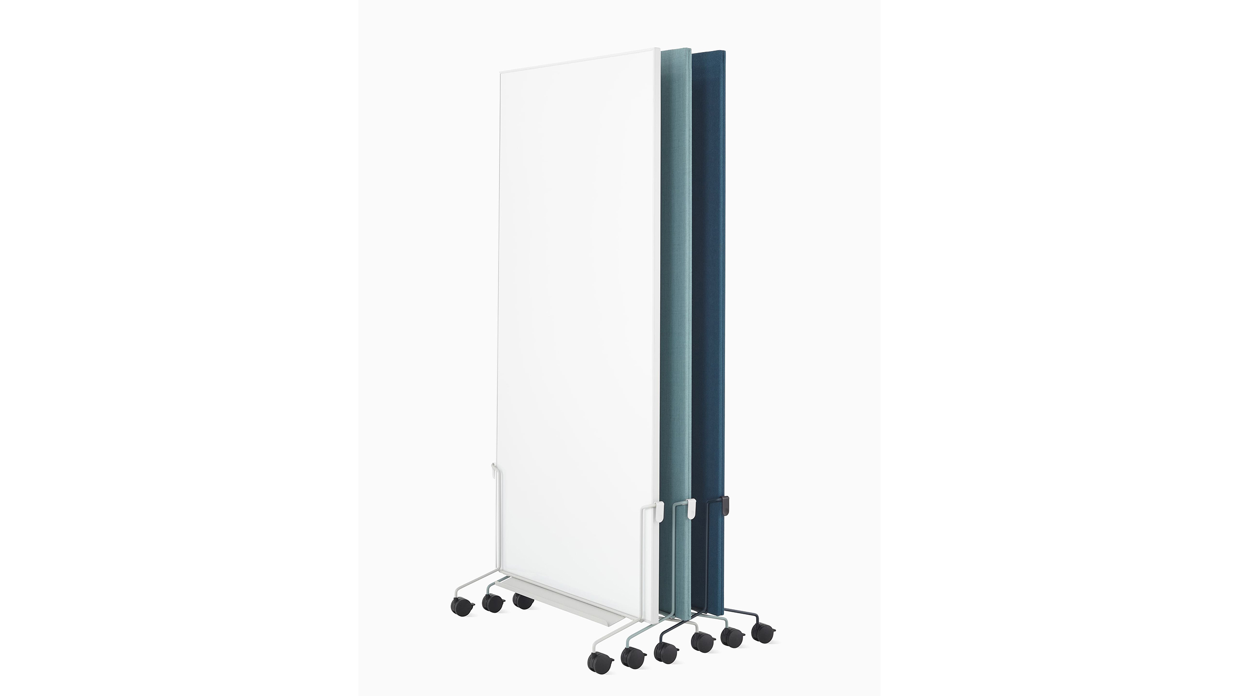 El atril móvil OE1 permite una colaboración flexible para los equipos donde sea que trabajen. Sus pizarras blancas y tableros para tachuelas se pueden utilizar también como delimitadores de espacio móviles y funcionan en conjunto con el riel y panel para pared OE1. Parte de la Colección espacio de trabajo OE1.