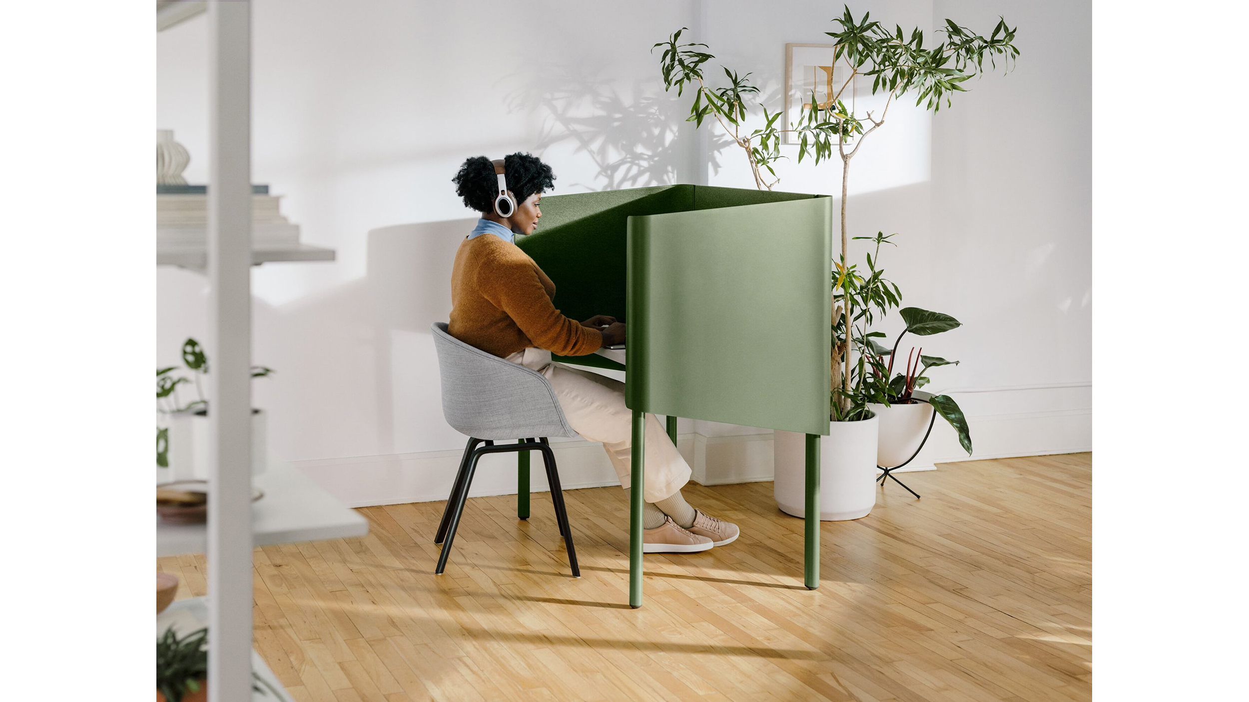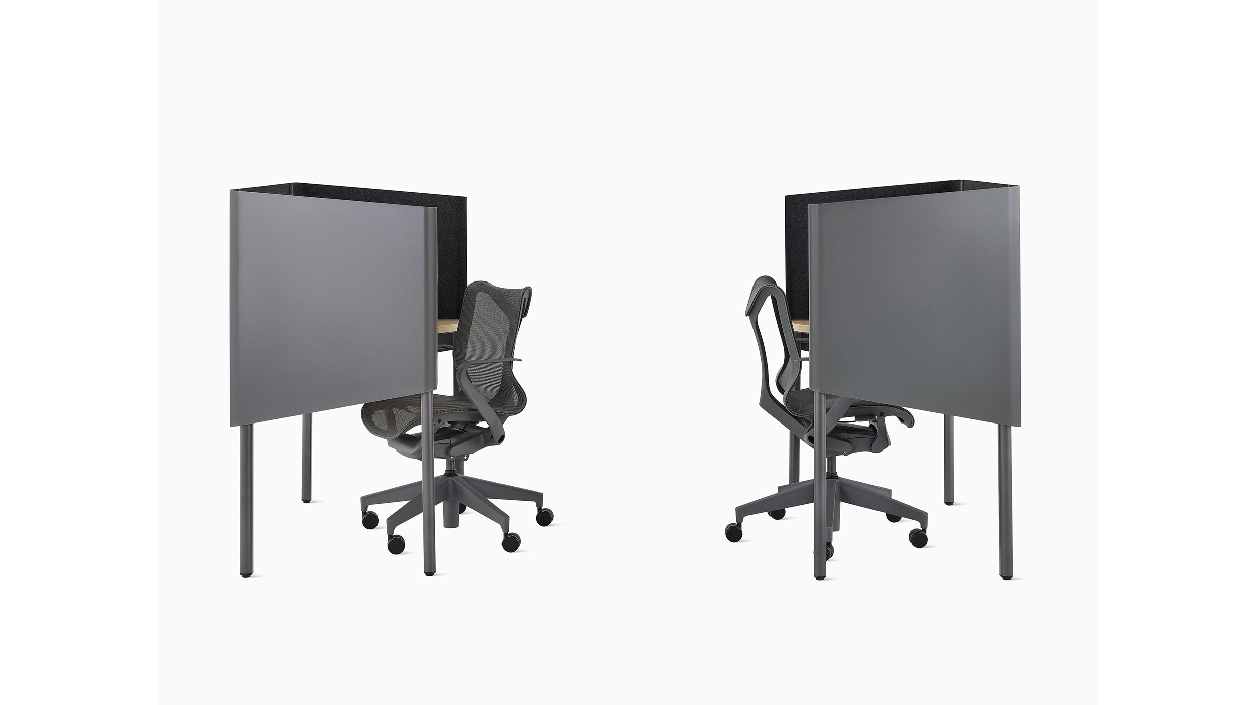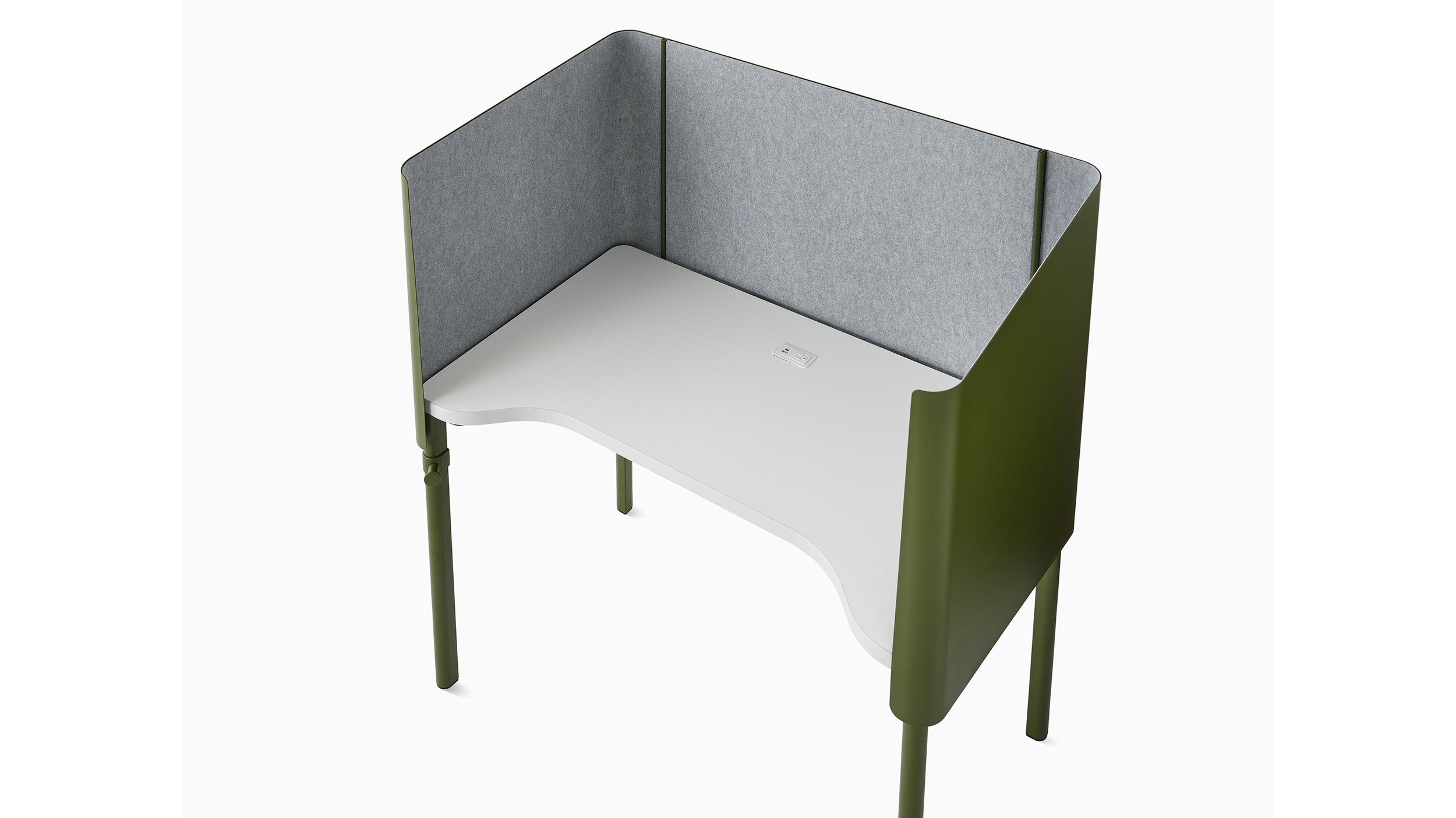 El esquinero OE1 es una estación de trabajo individual con privacidad visual y acústica para fomentar la concentración y la productividad. Parte de la Colección espacio de trabajo OE1.
