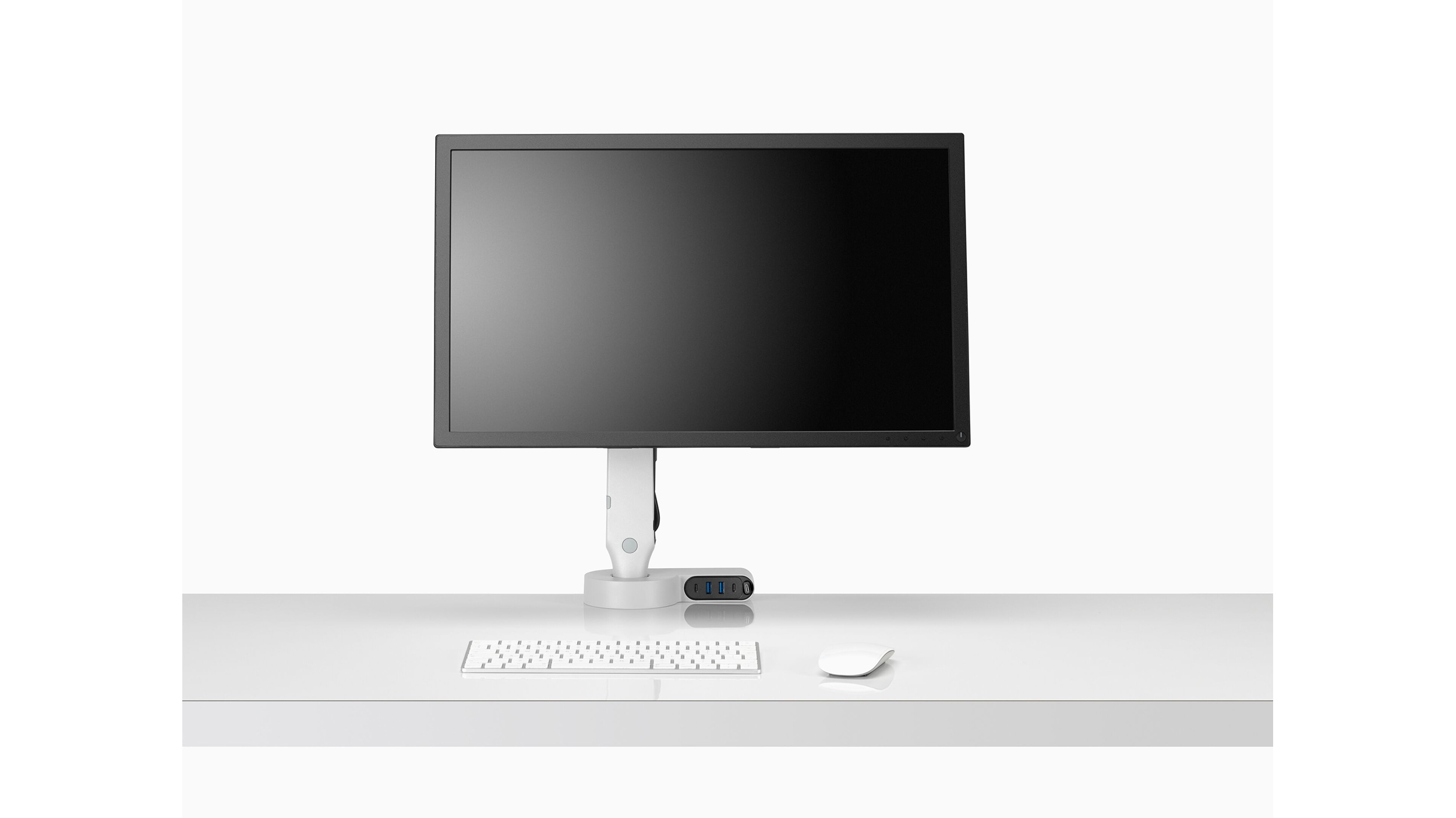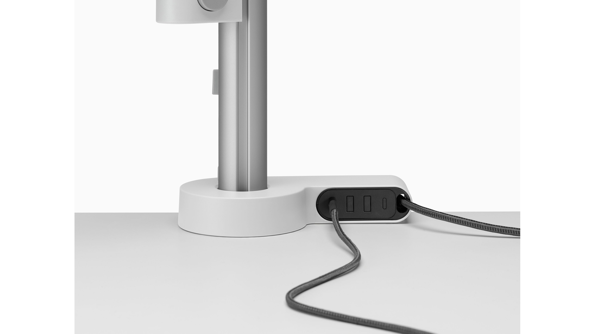 Diseñado para un fácil ajuste a la base del brazo articulado para monitor Flo, Ollin o Lima, el módulo de conectividad Ondo sirve para crear una estética de escritorio despejada y minimalista, agrupando y dirigiendo los cables hasta una estación de acoplamiento debajo del escritorio (no incluida). Ondo accede a la energía desde la estación de acoplamiento para ofrecer una forma conveniente de conexión y carga a sus dispositivos sobre el escritorio.