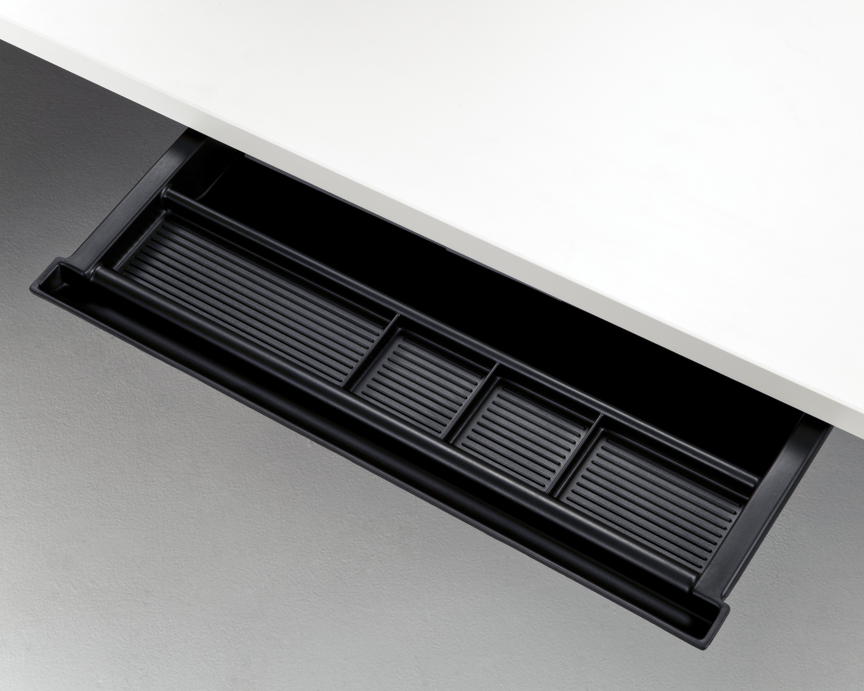 Práctico y versátil. Este cajón compacto tiene una gran capacidad y algunos divisores que lo ayudan a organizar papel, lápices y bolígrafos, tachuelas, sujetapapeles y objetos personales. Se monta sobre una superficie colgante o sobre una superficie de trabajo independiente. Disponible en versiones de plástico y metal.