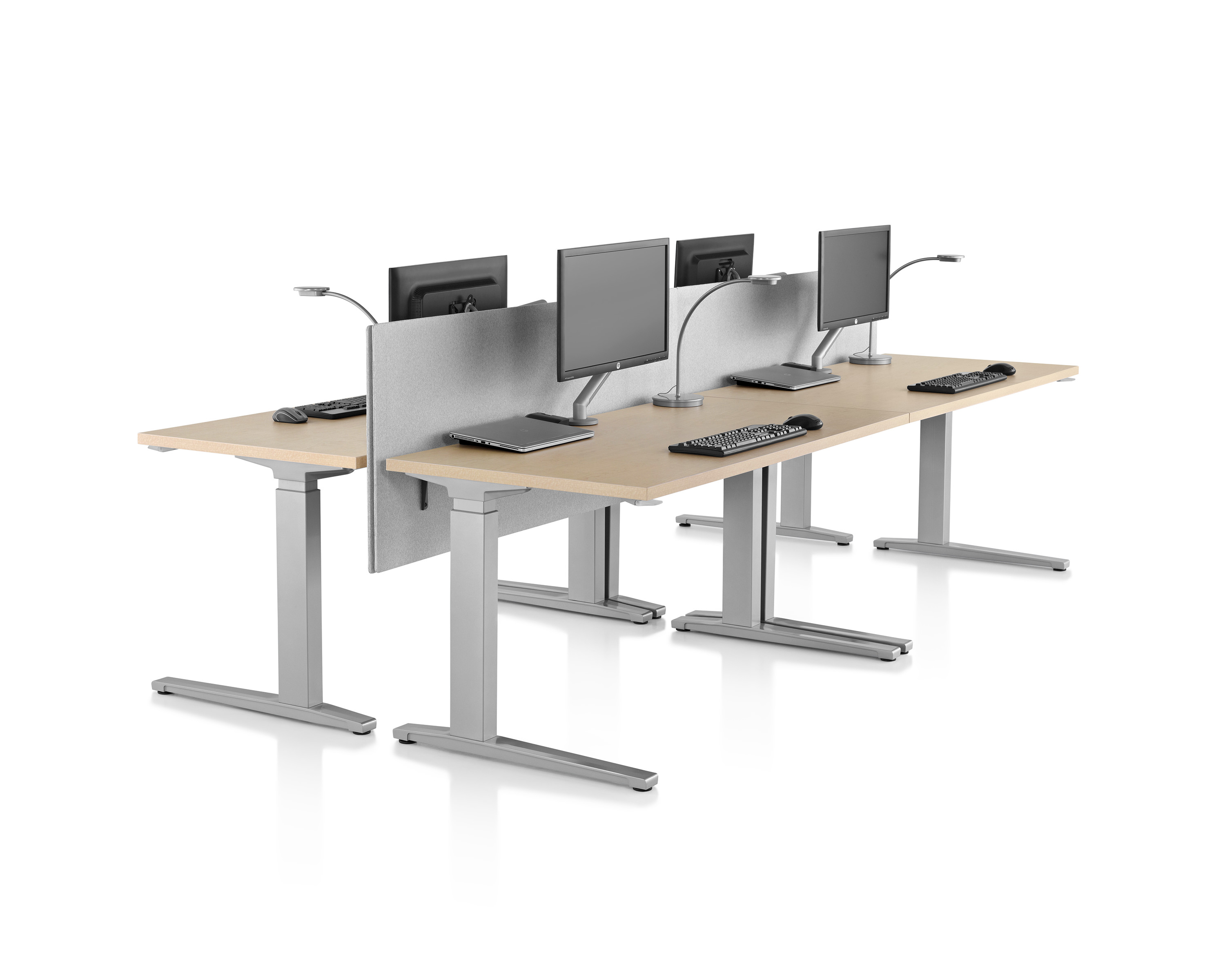En equilibrio entre lo abierto y lo exclusivo, la pantalla lateral Personal ofrece una forma fácil y atractiva de delimitar áreas de trabajo individuales dentro de una superficie de trabajo más grande y compartida.