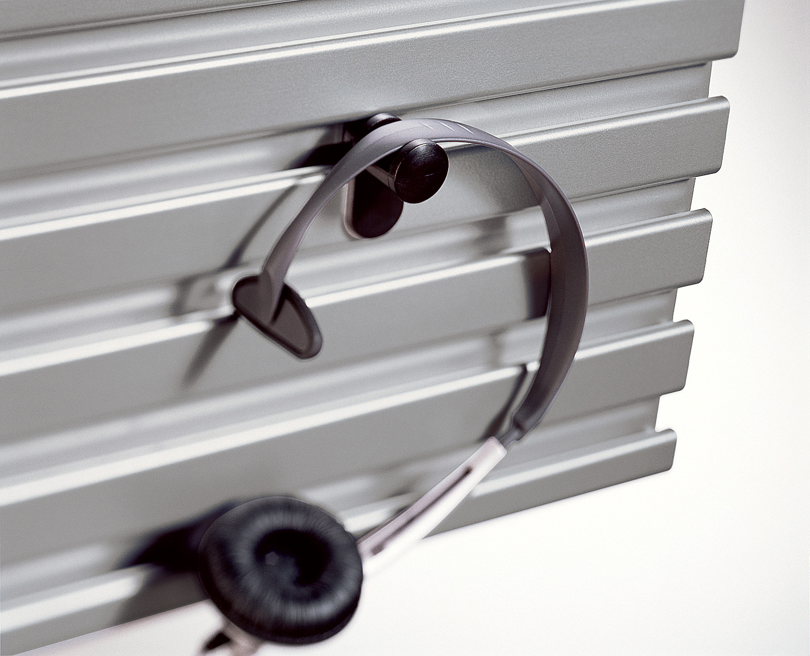 Amplíe sus opciones con un riel portaherramientas fijado a superficies, diseñado para sostener accesorios, como bandejas para papel, broches sujetadores, sujetadores de documentos o clips grupales. Puede sujetarse a superficies con un espesor de 1,3 cm a 4,10 cm.