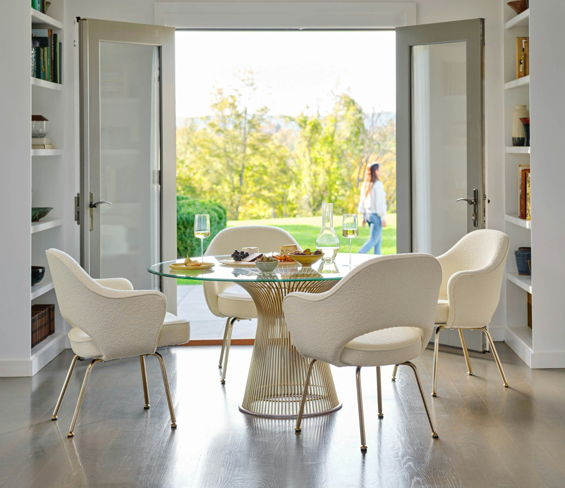 Siéntese y relájese con el sillón ejecutivo Saarinen. El diseño icónico combina la comodidad excepcional de la forma escultural de Eero Saarinen con una base giratoria de alto rendimiento, regulable en altura e inclinación ajustable según el peso. El diseño atemporal y versátil sigue adaptándose perfectamente a espacios de trabajo, conferencias y reuniones con cualquier decoración.