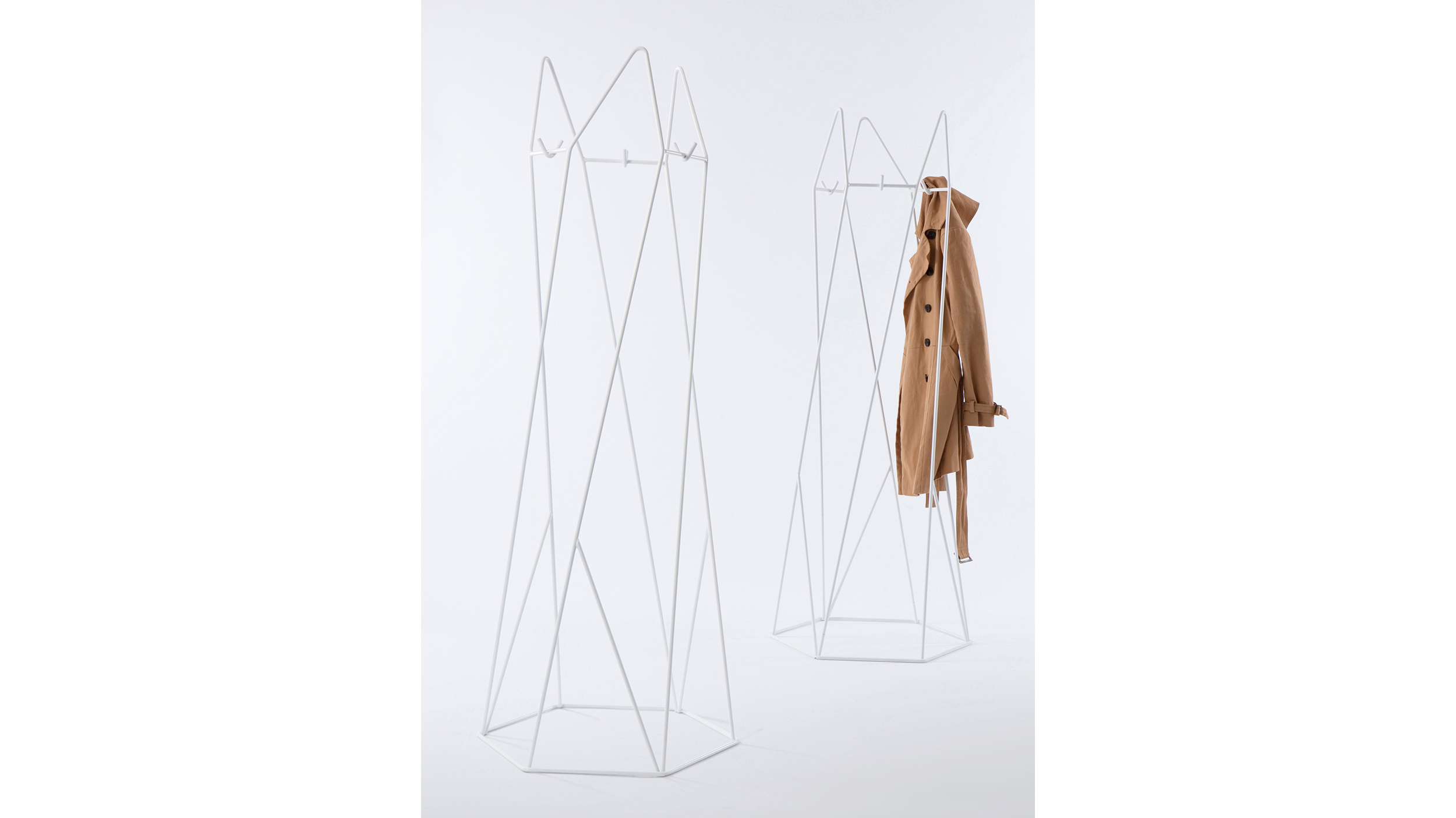 El perchero de pie Shard de naughtone responde a la necesidad funcional de un perchero de pie con una estética audaz y gráfica. Fabricado en alambre de acero soldado en una sola pieza, esta pieza llamativa está disponible en una variedad de colores. El perchero de pie Shard es 100% reciclable.