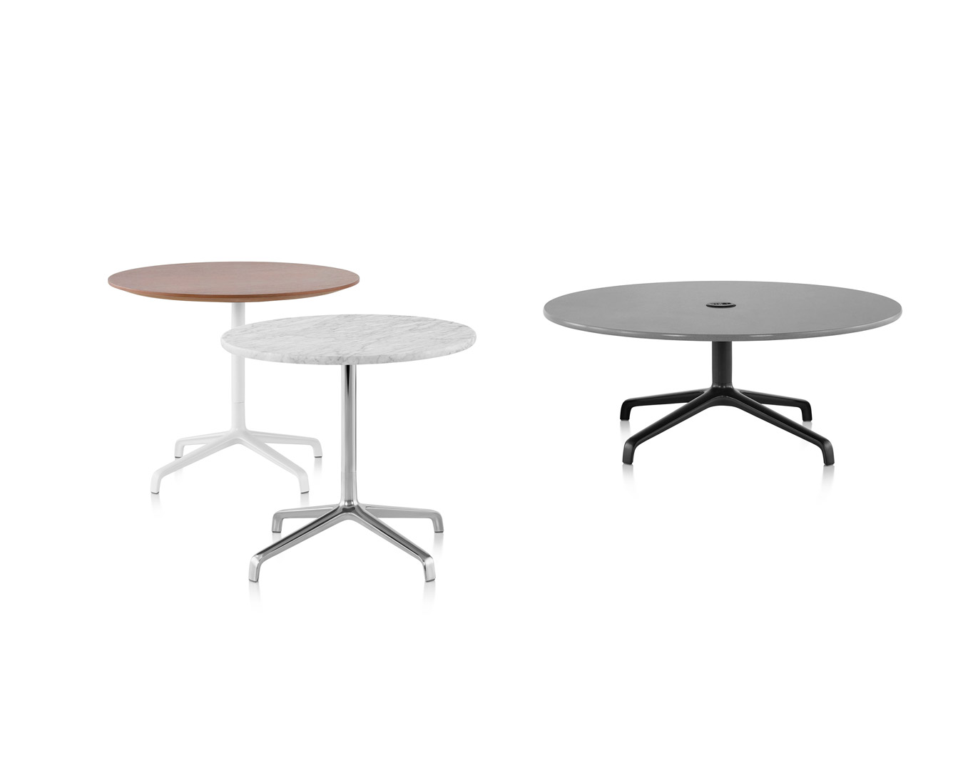 Ampliando la idea de comodidad que inspiró a los diseñadores Markus Jehs y Jürgen Laub para crear su silla lounge Striad, las mesas Striad en combinación brindan una presencia segura a una variedad de esquemas laborales. Del mismo modo en que una hermosa mesa de café consolida una sala de estar, estas mesas auxiliares sirven como puntos de reunión para reuniones informales o tareas que requieren concentración. Los tableros se fijan a la altura perfecta para apoyar computadoras portátiles y otras herramientas de trabajo, con una selección de unidades USB u otras opciones de tomacorriente disponibles para mantenerlas cargadas sin comprometer el atractivo cálido y residencial. Las bases comparten el mismo perfil y materialidad elegantes que la base de estrella de cuatro puntas de la silla lounge Striad.