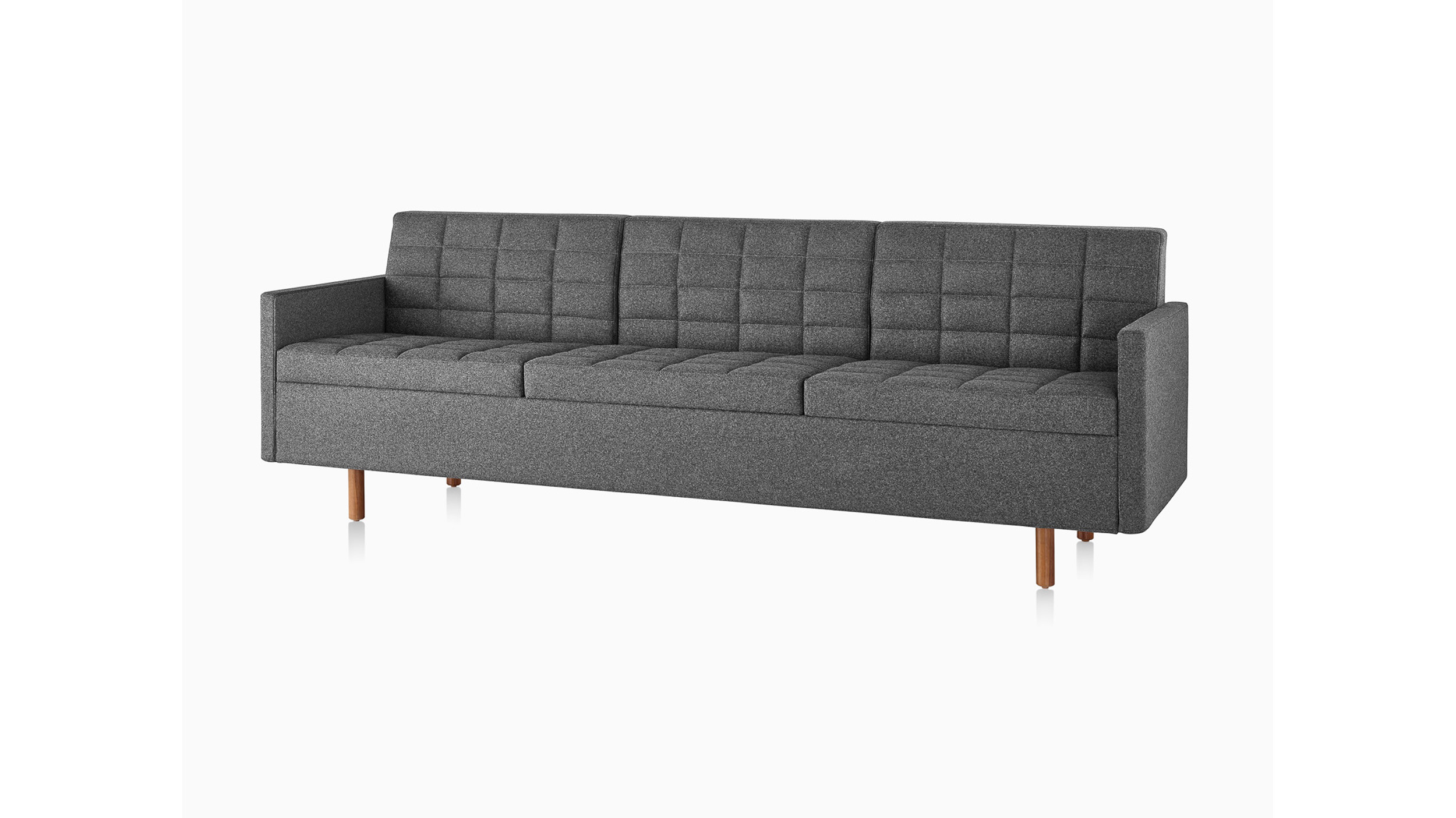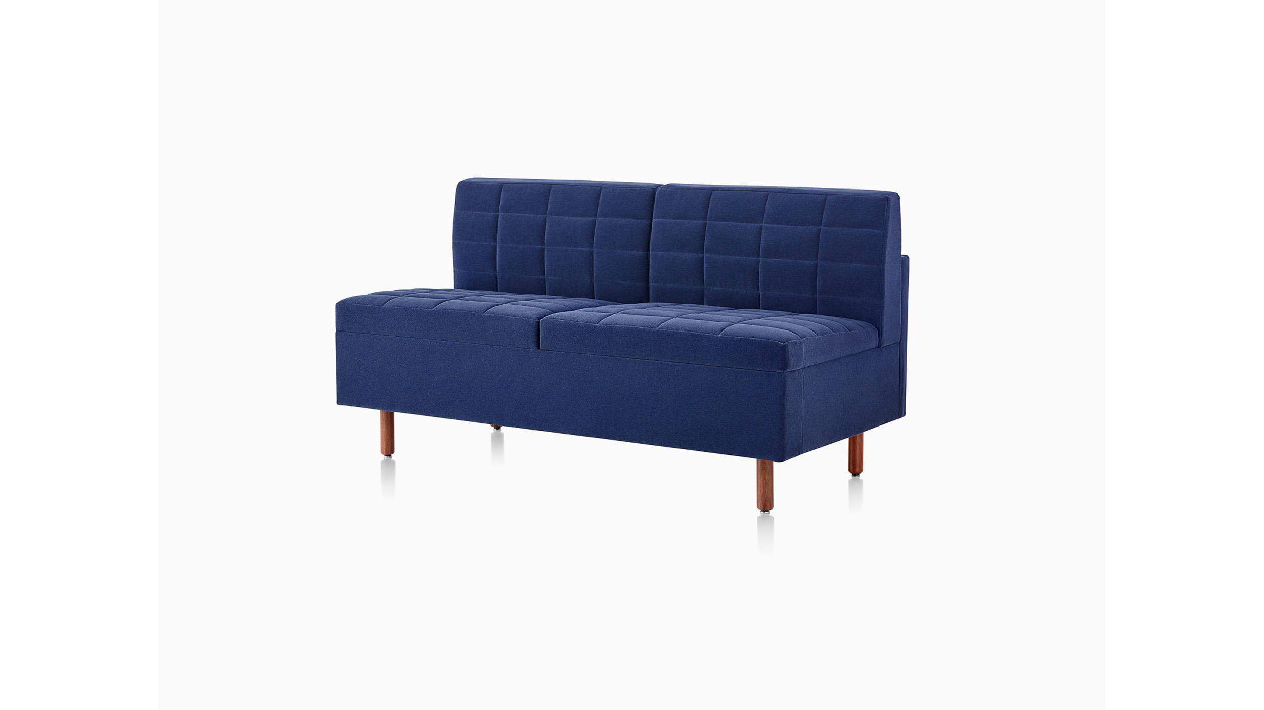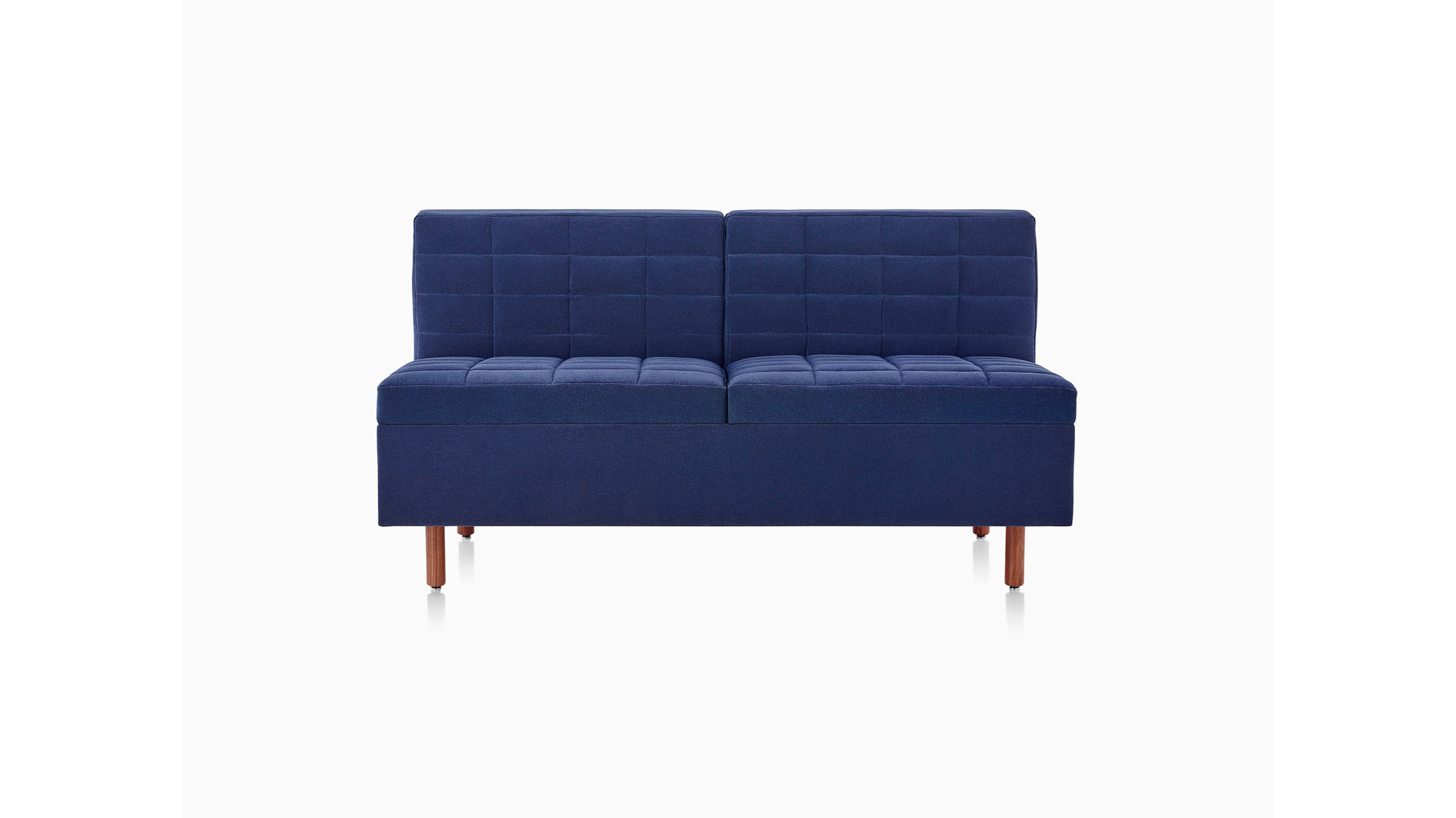 Presenta un perfil bajo y elegante gracias a la banda horizontal que forman el respaldo y los brazos (opcionales). Su apariencia es aún más liviana debido a la tapicería a medida, esmerada, que cubre los almohadones delgados de espuma de doble densidad. Cada pieza está disponible en una amplia gama de tapizados con o sin acolchado.