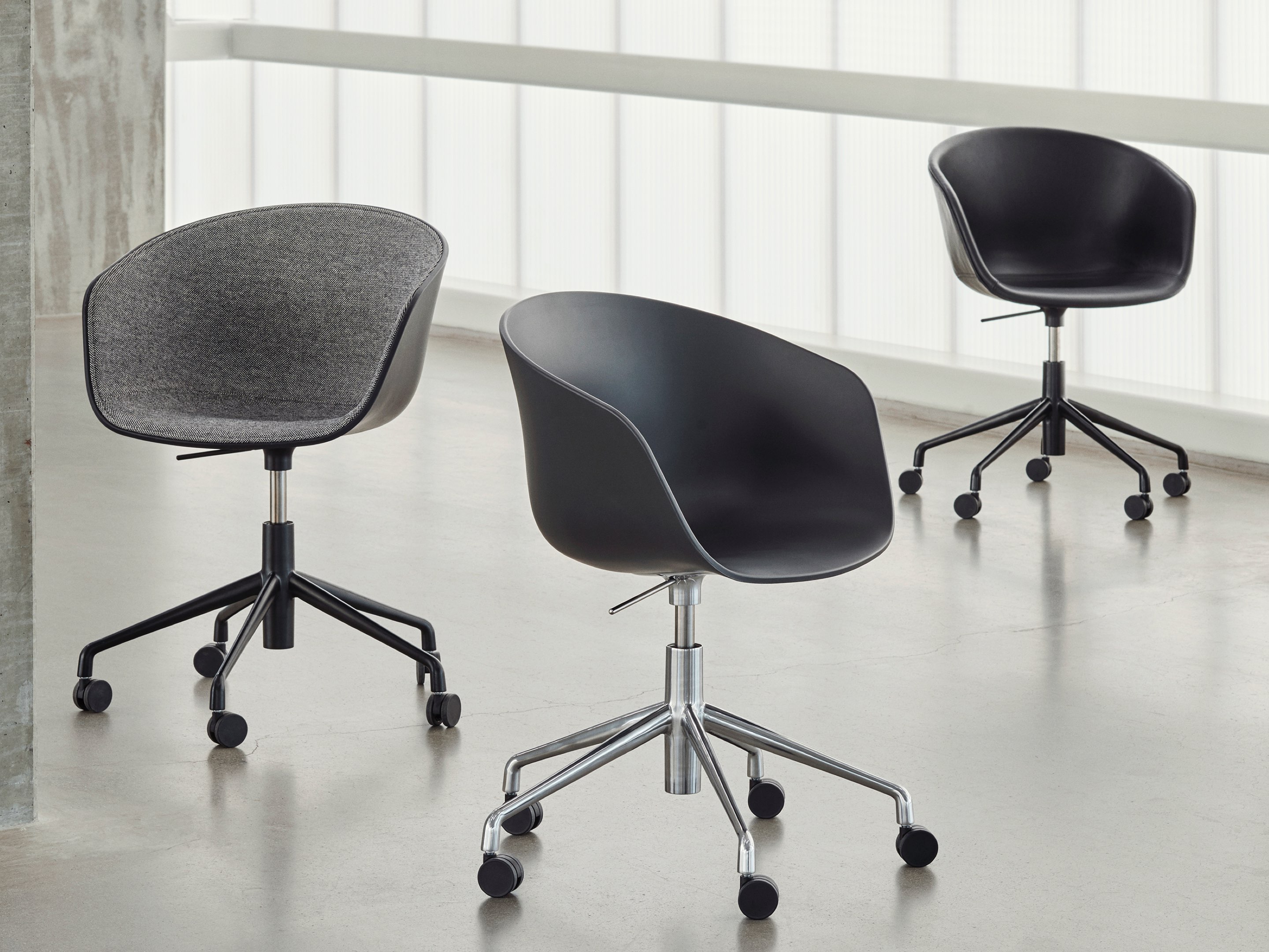 El concepto versátil de About A de Hee Welling brinda una sencillez ordenada y una expresión acogedora a cualquier oficina, desde esquemas corporativos formales hasta oficinas en el hogar. Las diferentes carcasas y bases (junto a una amplia gama de colores, telas y acabados) le brindan más opciones para adaptar la silla a casi cualquier ambiente.
