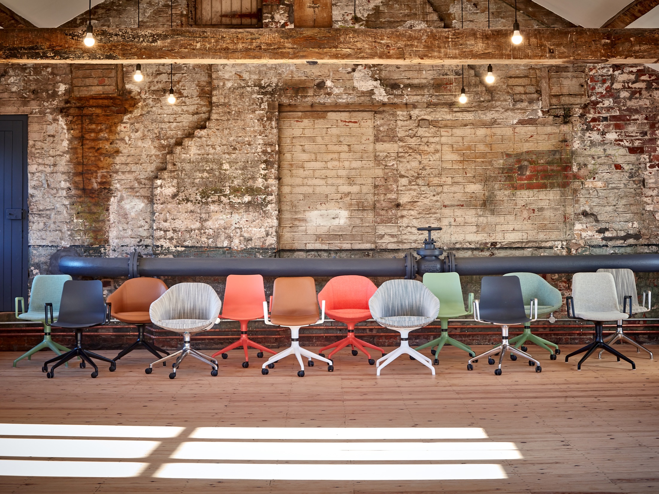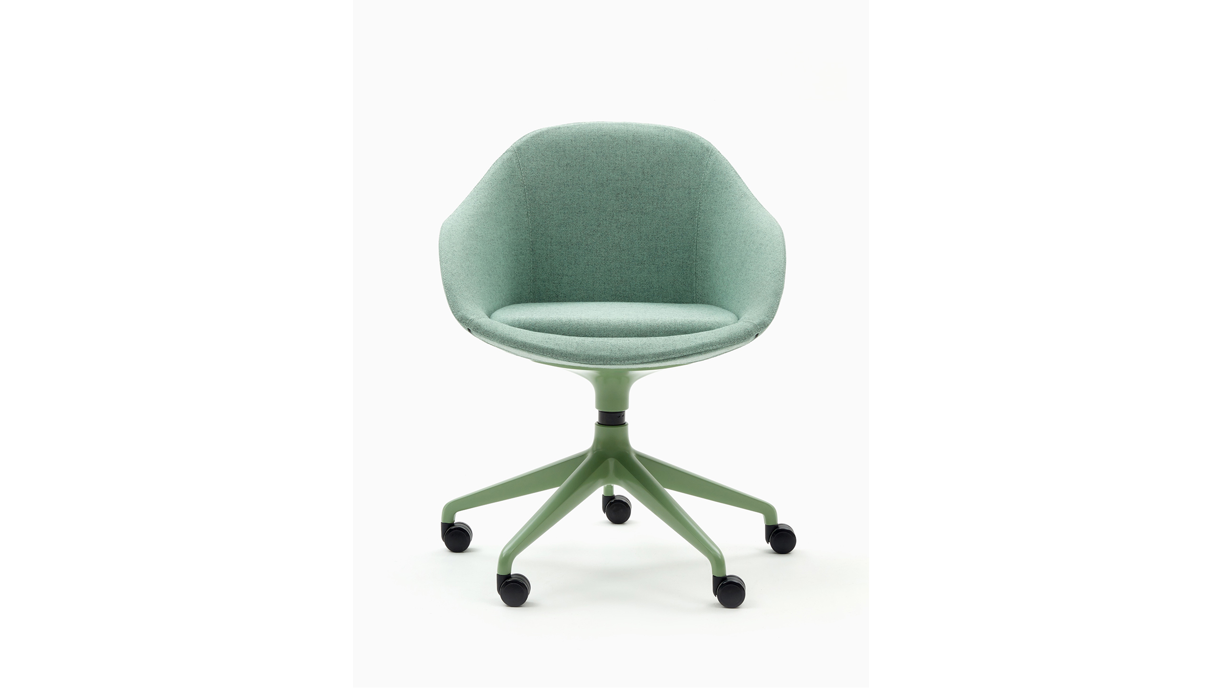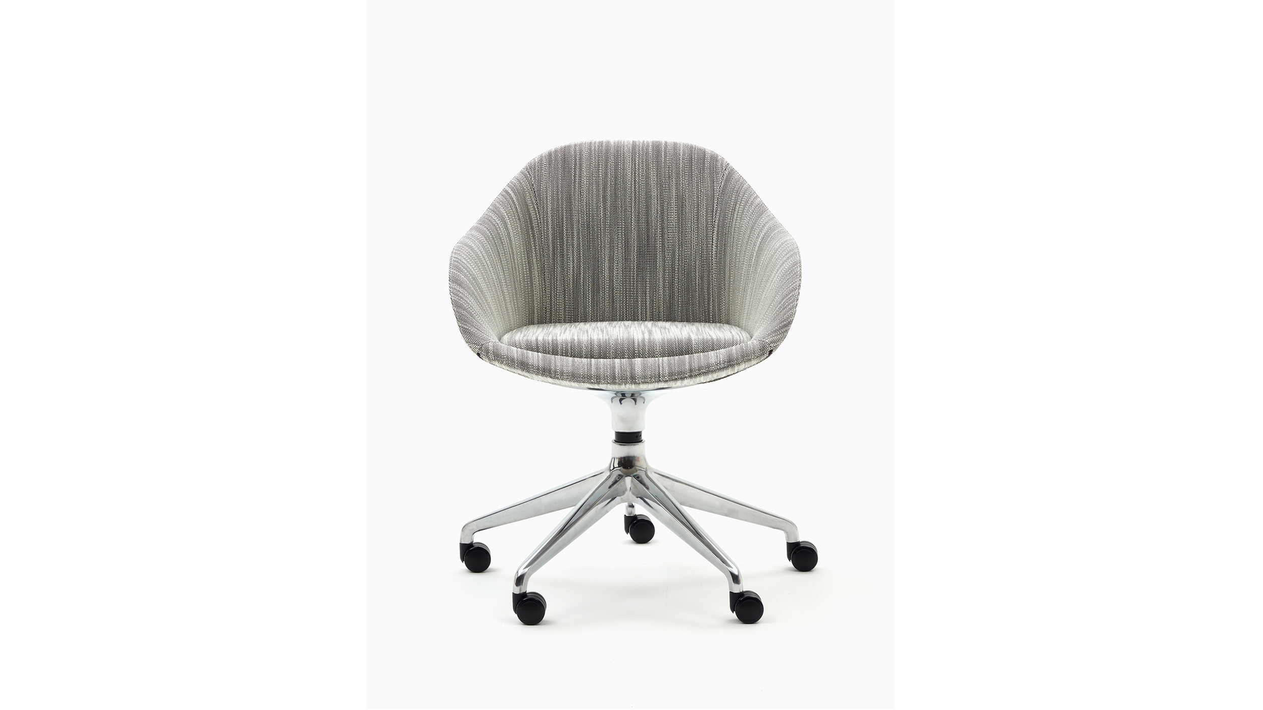 Equipada con una base giratoria y con ruedas, en forma de estrella de 5 puntas, la forma orgánica de la silla Always está siempre lista para cumplir rápidamente su función. Fabricada en espuma sobre una estructura de acero, la silla logra una silueta meticulosamente proporcionada sin comprometer el soporte, la comodidad o la durabilidad. Disponible en una amplia gama de telas para tapizar, incluidas opciones en dos tonos.