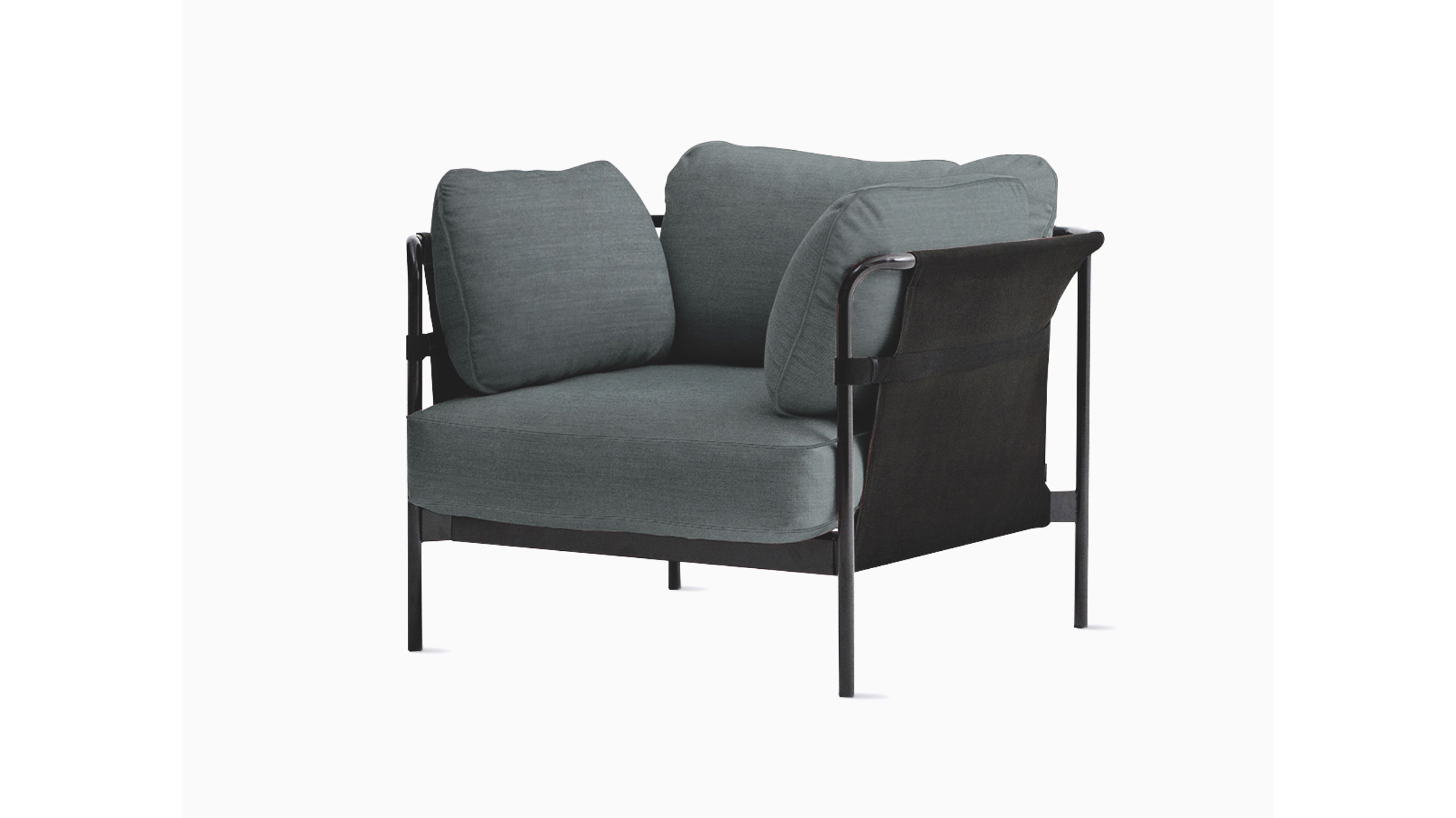 La silla lounge Can, expresión de un solo asiento del sofá Can de Ronan y Erwan Bouroullec, renueva la idea general de la sillería lounge y convierte algo esencialmente complicado en algo simple, relajado y accesible. La silla viene en un paquete plano y puede ensamblarse fácilmente en el hogar a partir de tres elementos básicos: estructura, cubierta y cojines.