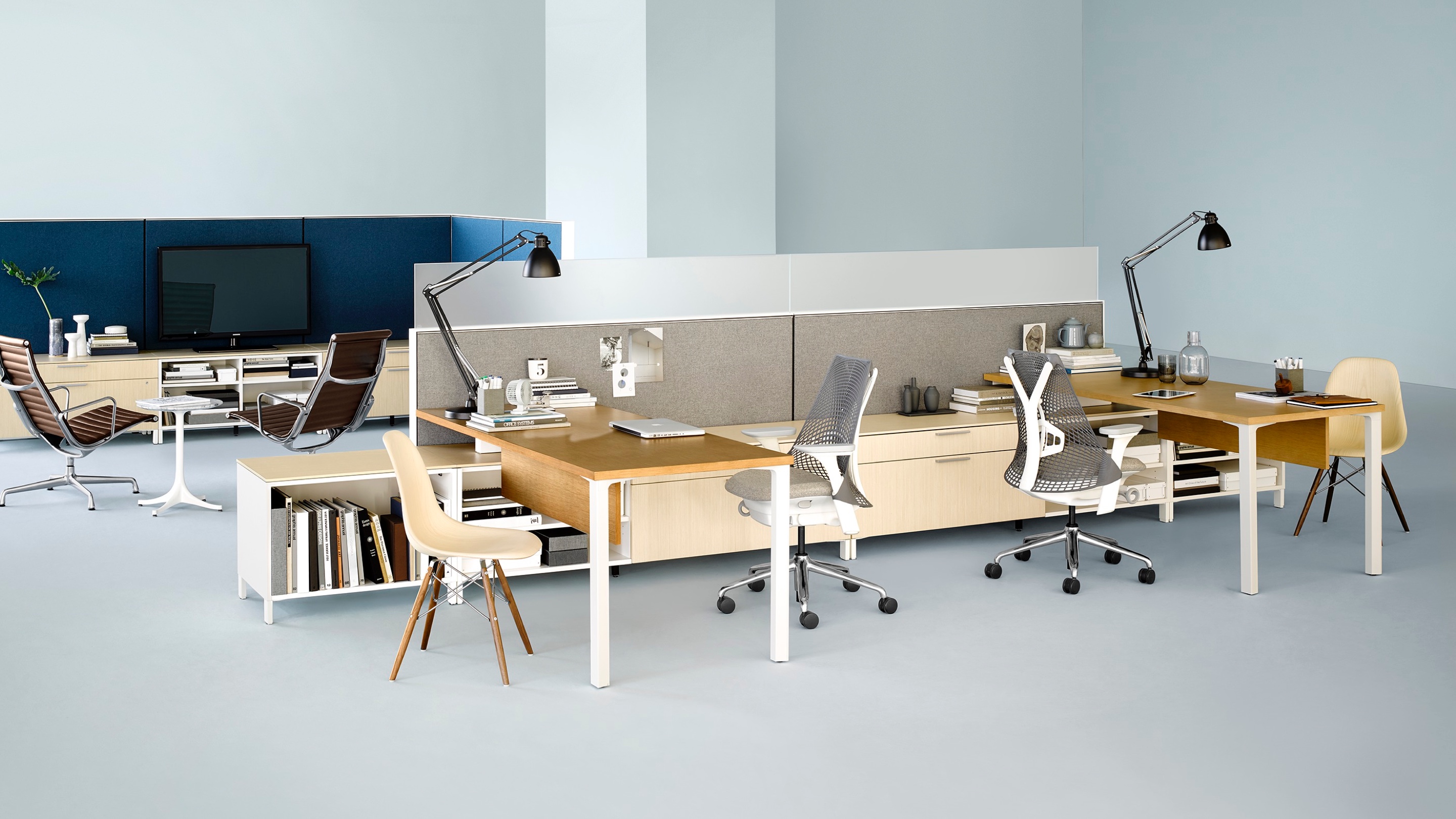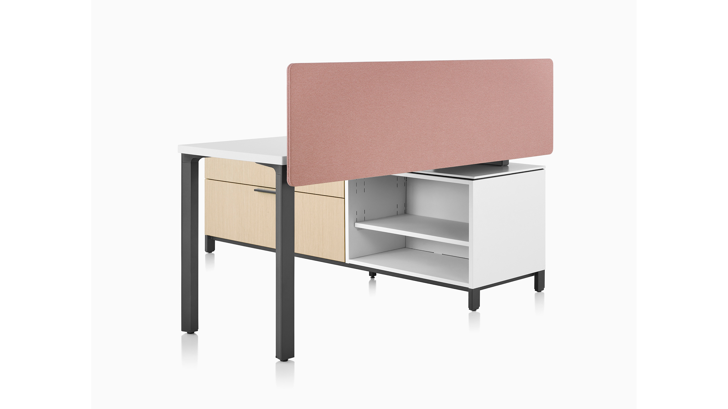 Canvas Storage es un almacenamiento multifuncional que en ruta energía y datos y guarda elementos personales y herramientas de trabajo. Más que un lugar para guardar sus snacks, el sistema soporta superficies de trabajo y brinda sillería para colegas que se detienen a charlar. Las múltiples opciones de materiales armonizan con el resto de Canvas Office Landscape.