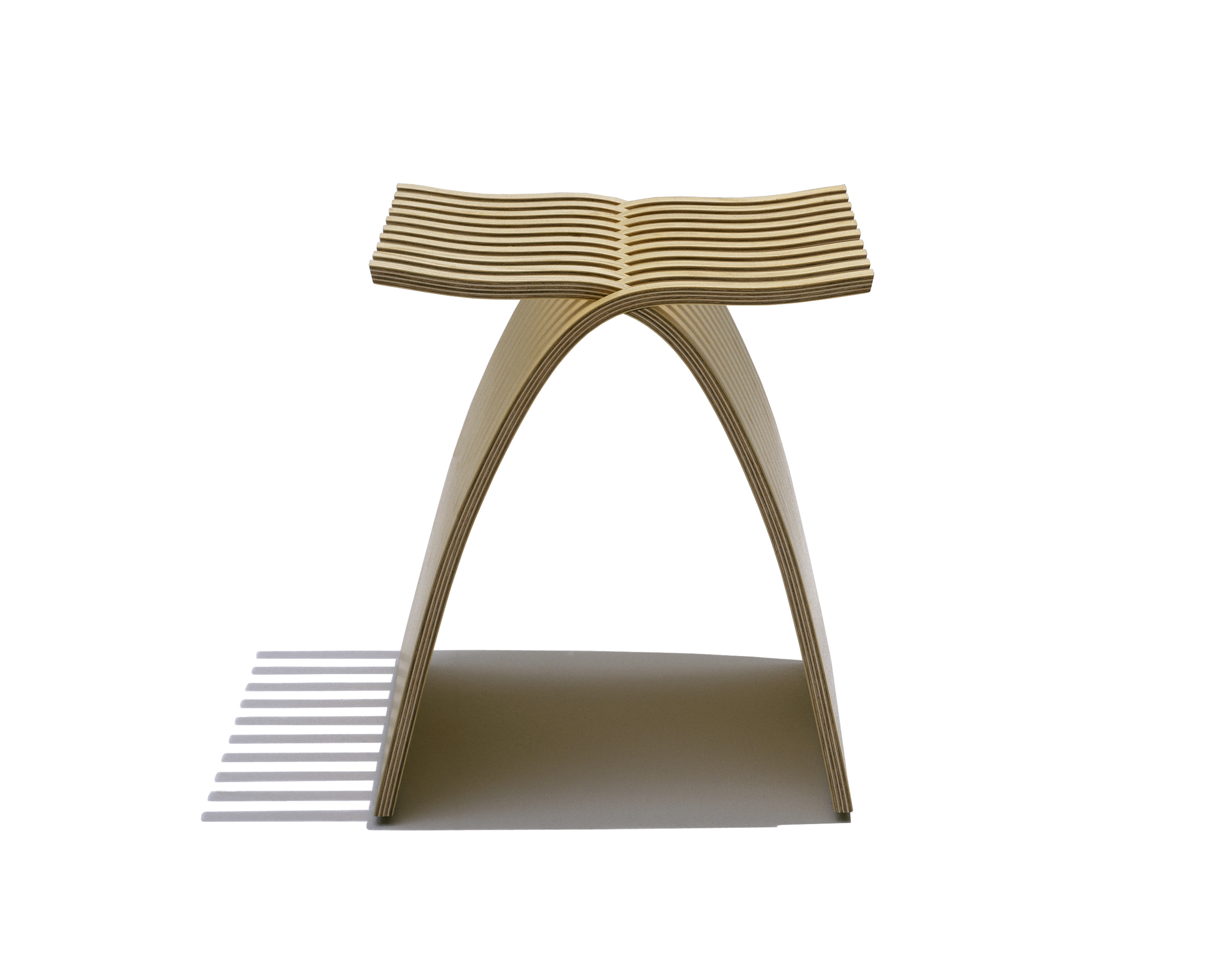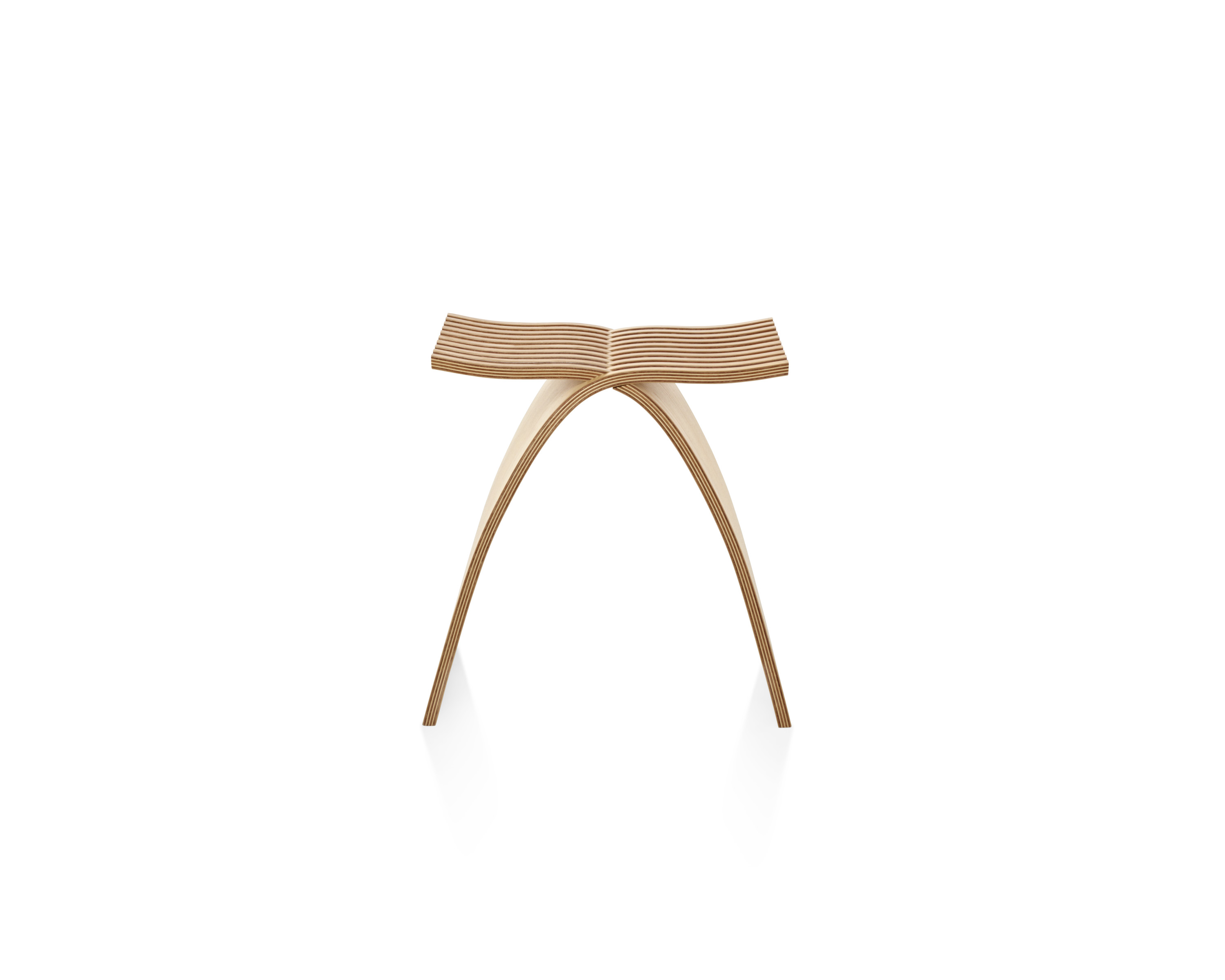 El taburete Capelli está formado por dos piezas de laminado idénticas, cada una con "dedos" ondulantes en la parte superior que se entrelazan sin herramientas ni sujetadores. Es una estructura ingeniosamente estable y elegante que resulta agradable para sentarse y es algo simplemente hermoso de observar.