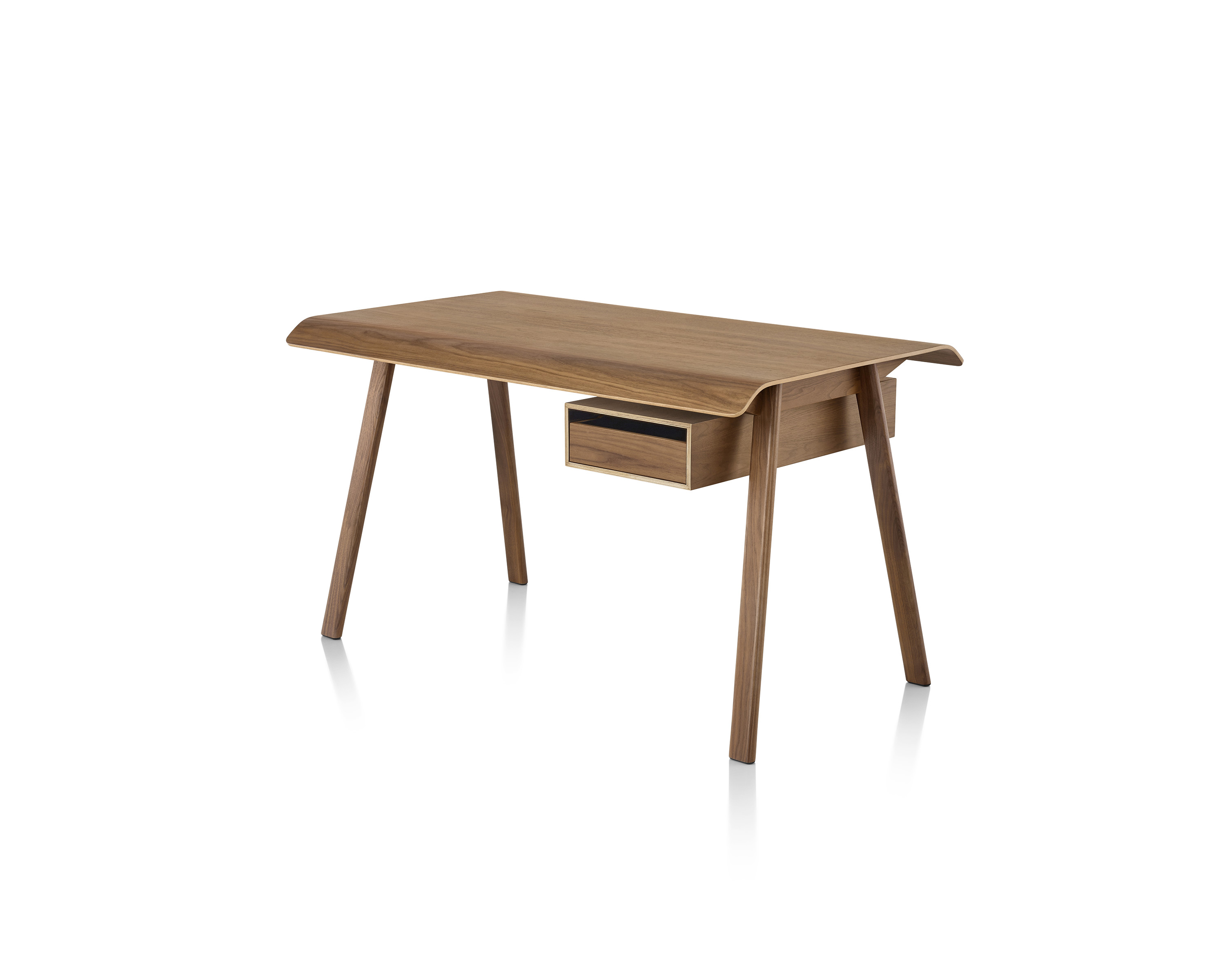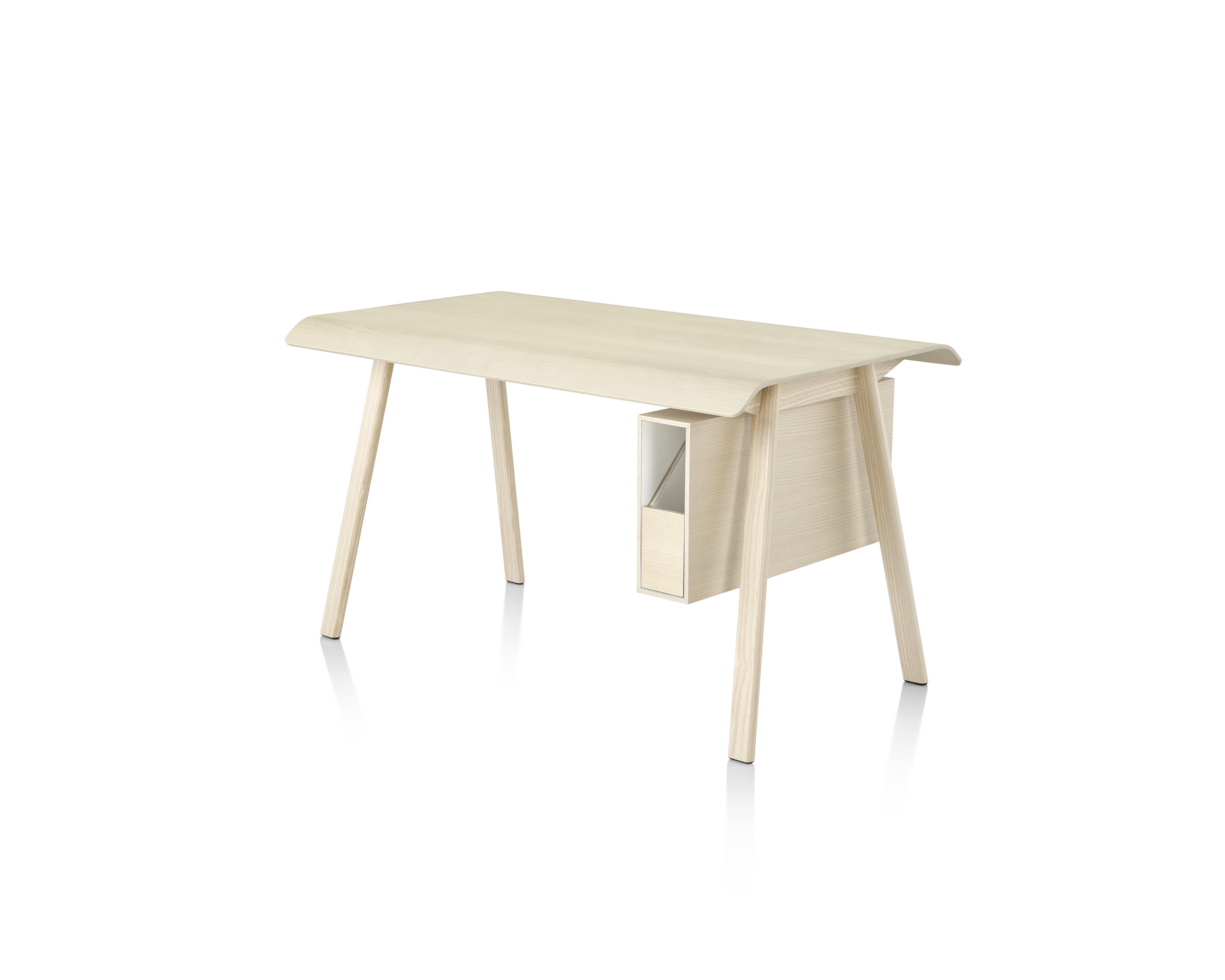 El diseñador Todd Bracher asegura dicho equilibrio refinando la idea de un escritorio en su esencia. Con sólidas patas de madera, bordes suaves, una cubierta en madera laminada moldeada y soluciones sin precedentes de manejo de cables y almacenaje, este escritorio es agradable física y estéticamente.