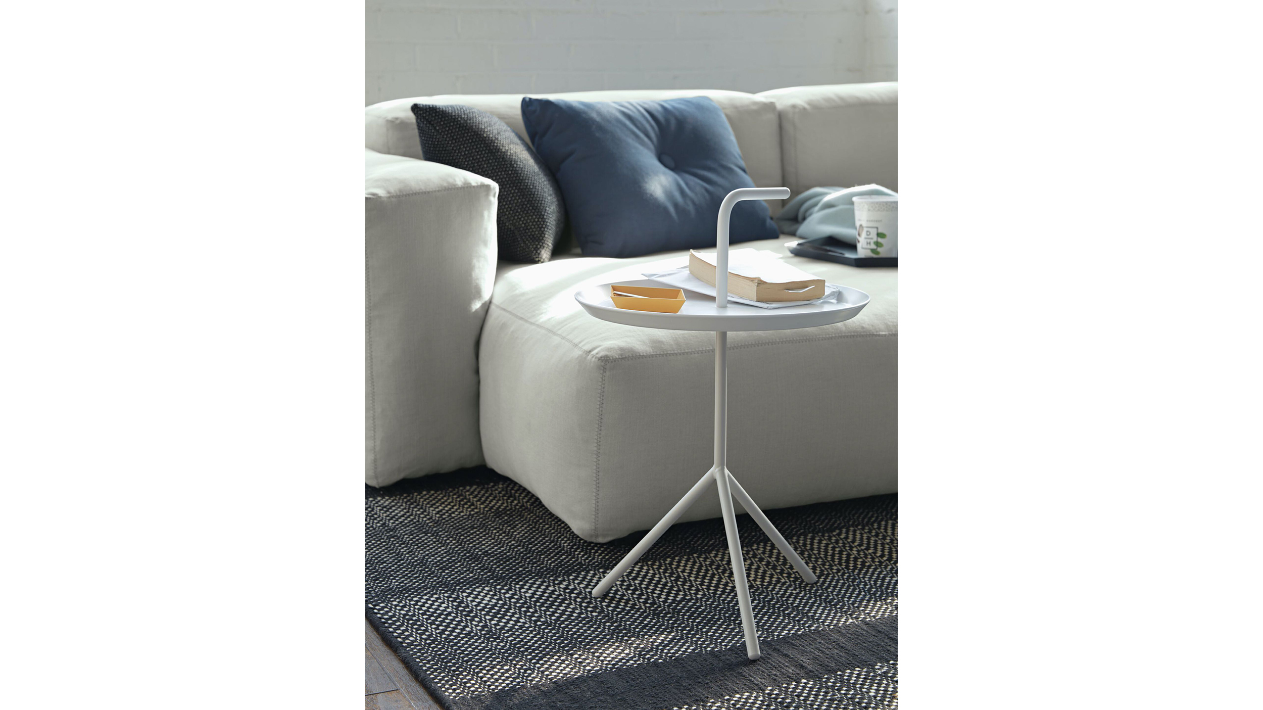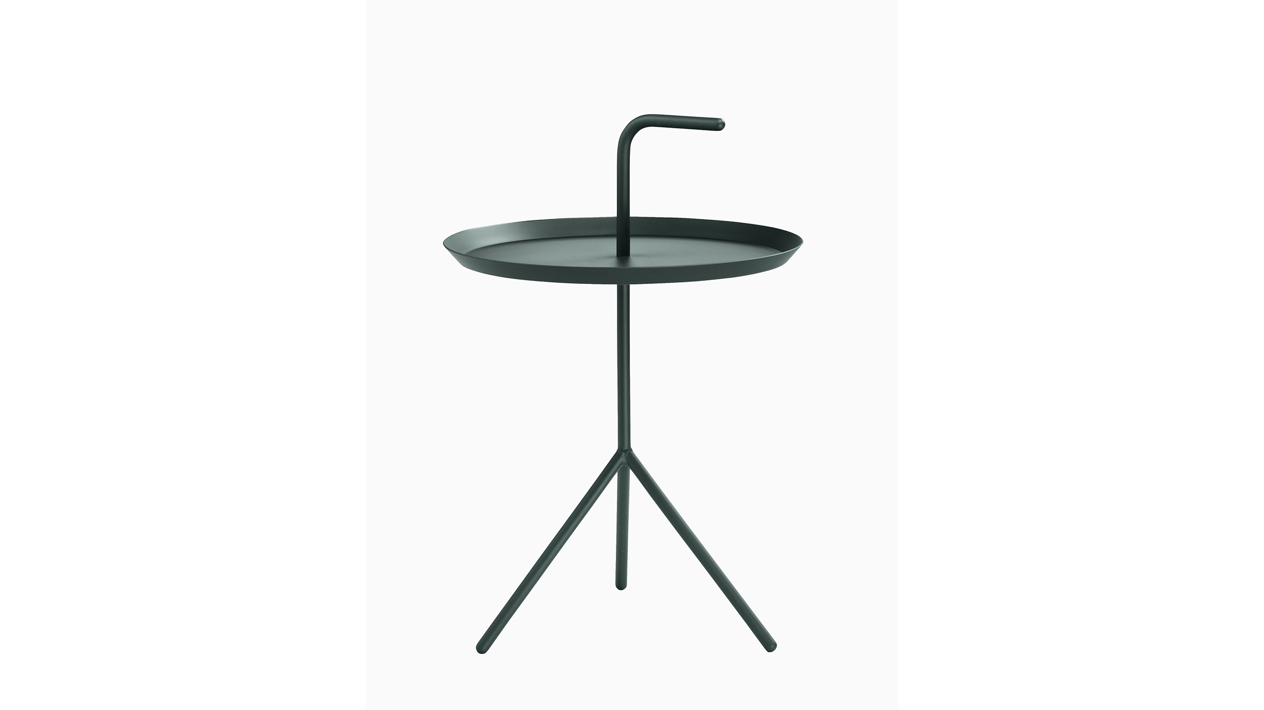 Acertadamente llamada “Don’t Leave Me” (No me dejes) y comúnmente abreviada “DLM”, esta mesa auxiliar portátil tiene una manija que permite transportarla de una sala a la otra. Si bien tiene una estructura liviana, sus patas inclinadas aportan gran estabilidad. Disponible en tamaño estándar o XL.