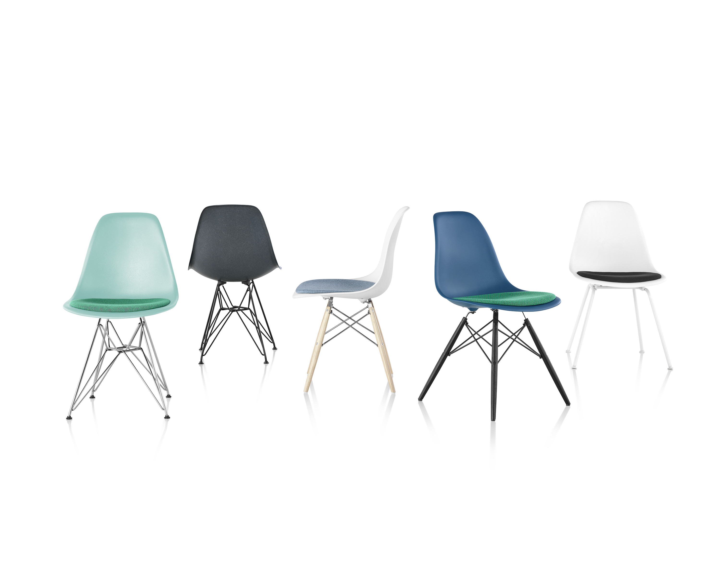 Las sillas de plástico moldeado Eames están disponibles como sillas simples o sillones, y se ofrecen en una amplia variedad de colores, entre los que se encuentran las opciones de archivo u opciones nuevas.