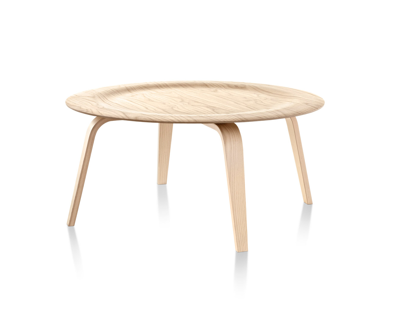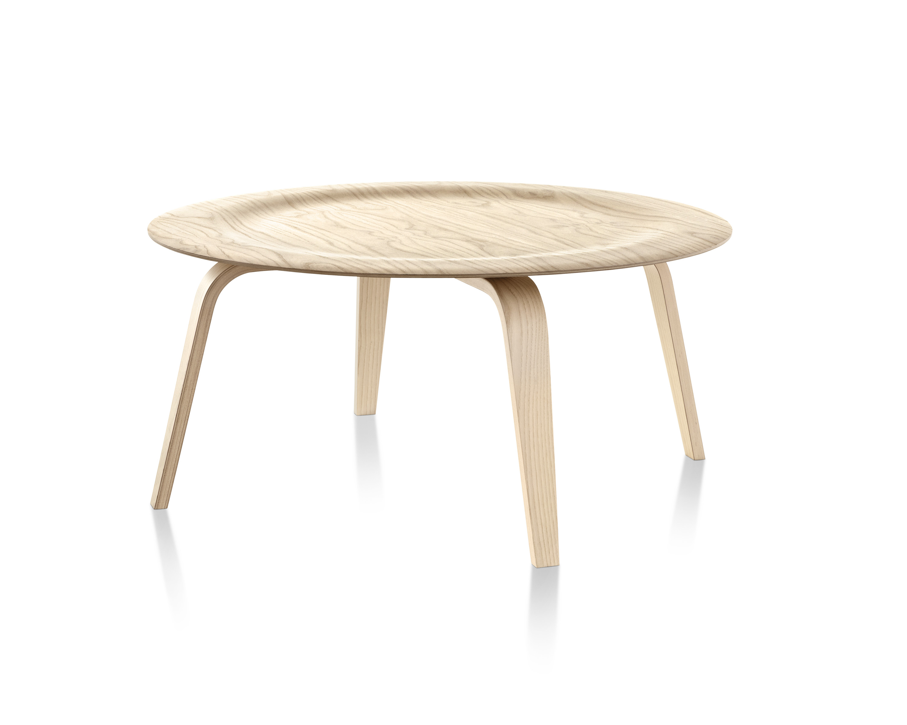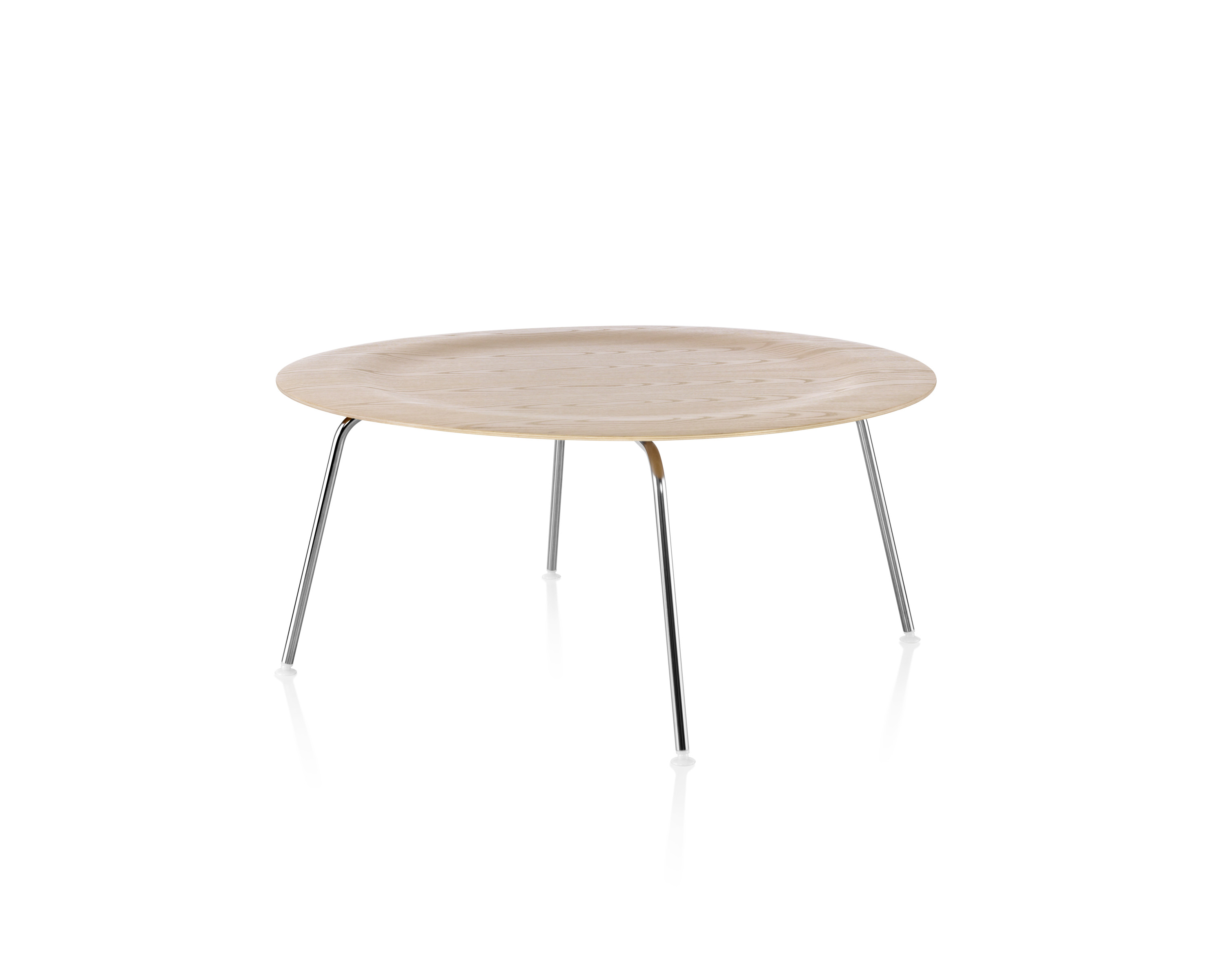 La superficie de ambas versiones es un ejemplo elocuente del espíritu del diseño inicial de los Eames. La tapa redondeada, levemente dentada, crea un perfil esbelto que forma una pieza central simple y sorprendente en cualquier espacio residencial o comercial. Puede estar rodeada de tumbonas de madera laminada moldeada o bien compensar un área de asientos con un sofá.