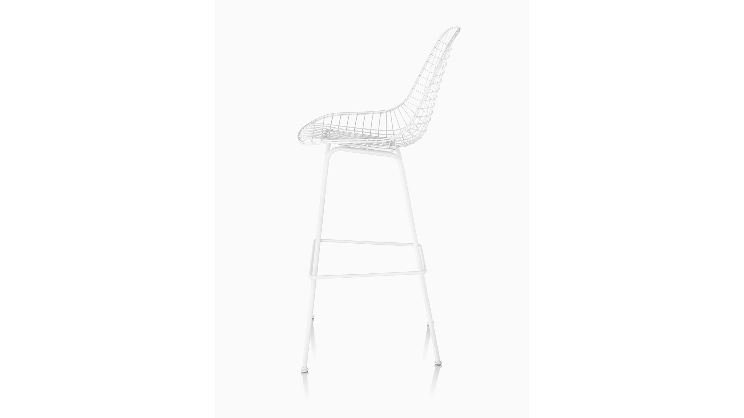 En la década de los años 50, la oficina Eames desarrolló la versión de alambre soldado y curvado en su concepto de silla de una sola pieza. La versión del taburete Eames Wire para exteriores es un descendiente directo de esas experimentaciones, y complementa superficies con altura para bares o mostradores en espacios para exteriores. La forma icónica de carcasa de alambre tiene un revestimiento contra polvo para mayor durabilidad en exteriores, y se centra sobre una base alargada de 4 patas.
