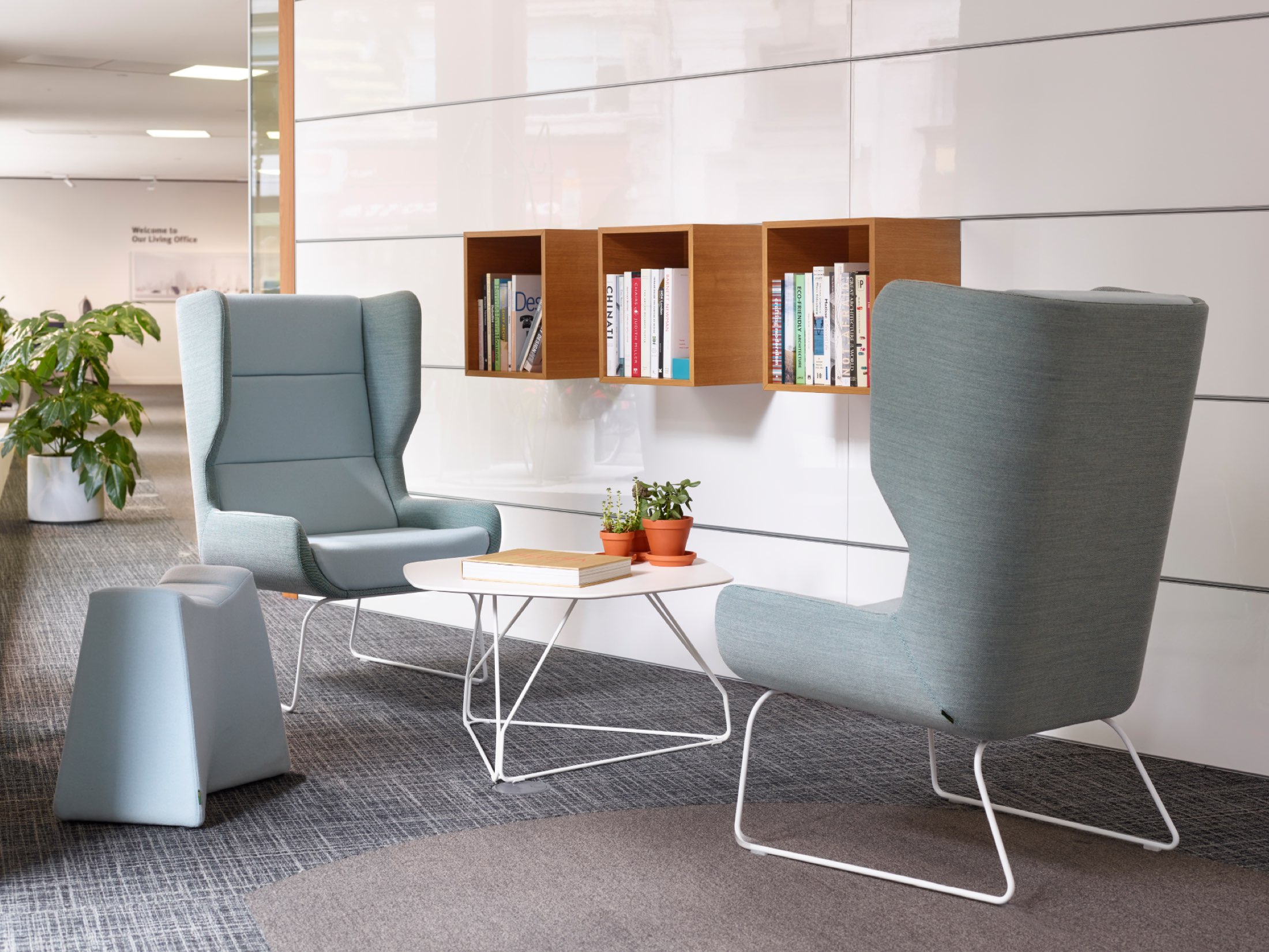 El sillón Hush de respaldo alto revive el estilo del clásico sillón orejero en esquemas contemporáneos, donde su respaldo envolvente ofrece una sensación de privacidad. También se encuentra disponible con respaldo bajo. Ambos modelos se han diseñado para ofrecer comodidad y poder personalizarse, con una posición erguida que brinda soporte y una amplia variedad de opciones de tapicería.
