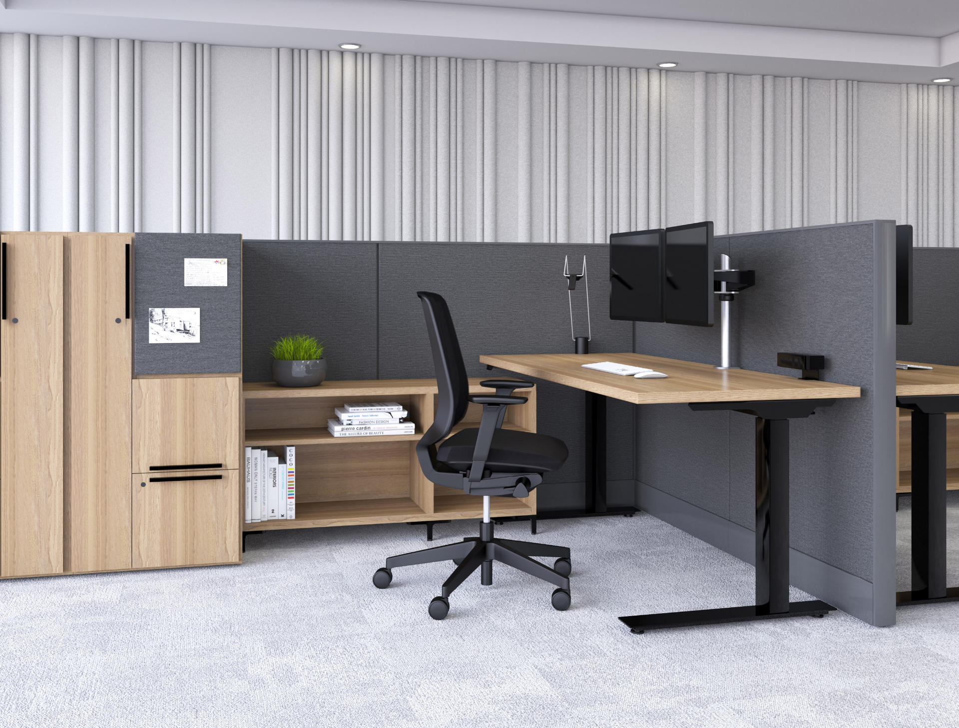 k. stand es una colección de mesas de altura ajustable que satisfacen las necesidades de planificación más populares. Con una gama adaptable de mesas y accesorios, k. El stand ofrece a los usuarios opciones y flexibilidad que contribuyen al bienestar, el compromiso y la productividad individual y organizacional.