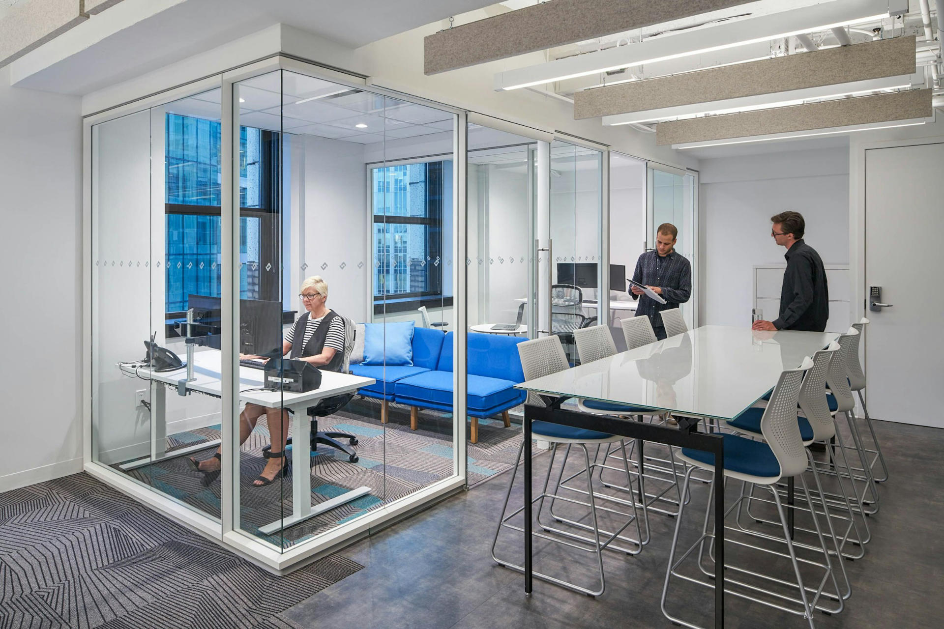 k. El stand responde a las necesidades de la oficina actual creando espacios adaptables que apoyan el trabajo entre grupos en todas las áreas del lugar de trabajo. k. El soporte se adapta fácilmente a pantallas de escritorio junto con accesorios ergonómicos KnollExtra, incluidos brazos para monitores y luces de trabajo.