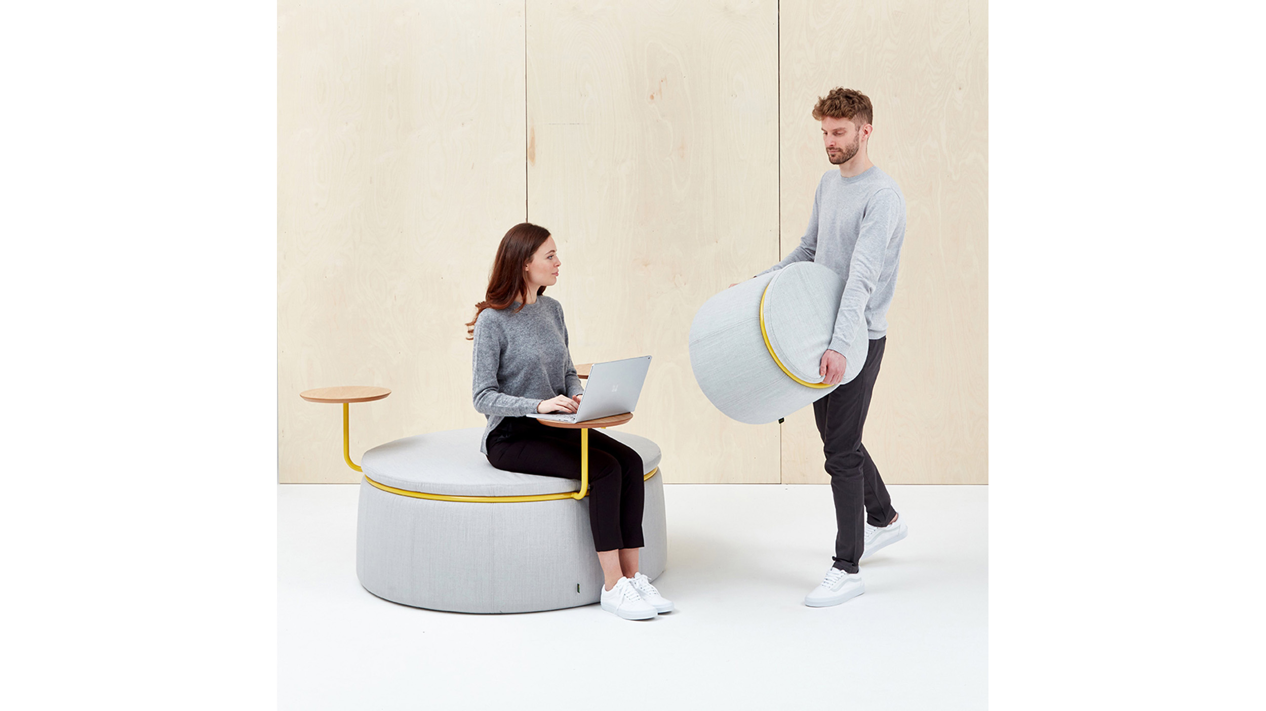 El mobiliario lounge Lasso transforma los espacios abiertos en centros para la colaboración. Ubique los taburetes Lasso de uno o tres asientos juntos en espacios públicos, donde las superficies de trabajo integrado y el soporte opcional para la tecnología (disponible para el taburete de tres asientos únicamente) potencian el trabajo de individuos y equipos. Disponible en una amplia gama de tapizados.