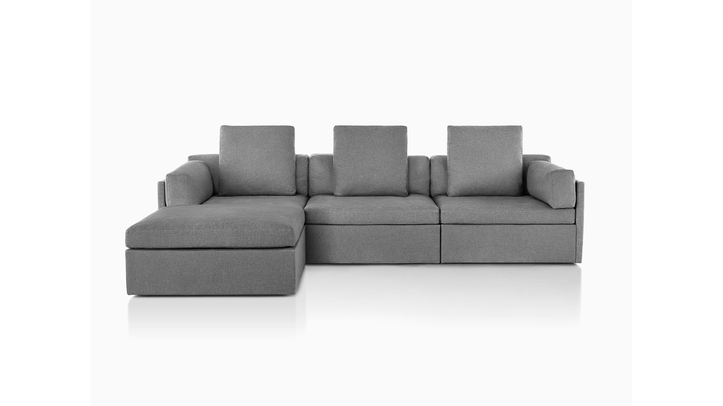 Completamente tapizada y sin patas visibles, la sillería lounge Module ofrece una comodidad y un apoyo lujosos para descansar. El marco contiene dos pulgadas (5 cm) de relleno. Con costuras superiores para un estilo suave, no cuadrado, los cojines del respaldo tienen un relleno de fibra con plumas y plumón. Los cojines laterales desmontables también pueden usarse como suaves reposacabezas. Los cojines sueltos se pueden reorganizar para una comodidad óptima y posturas para sentarse y relajarse.