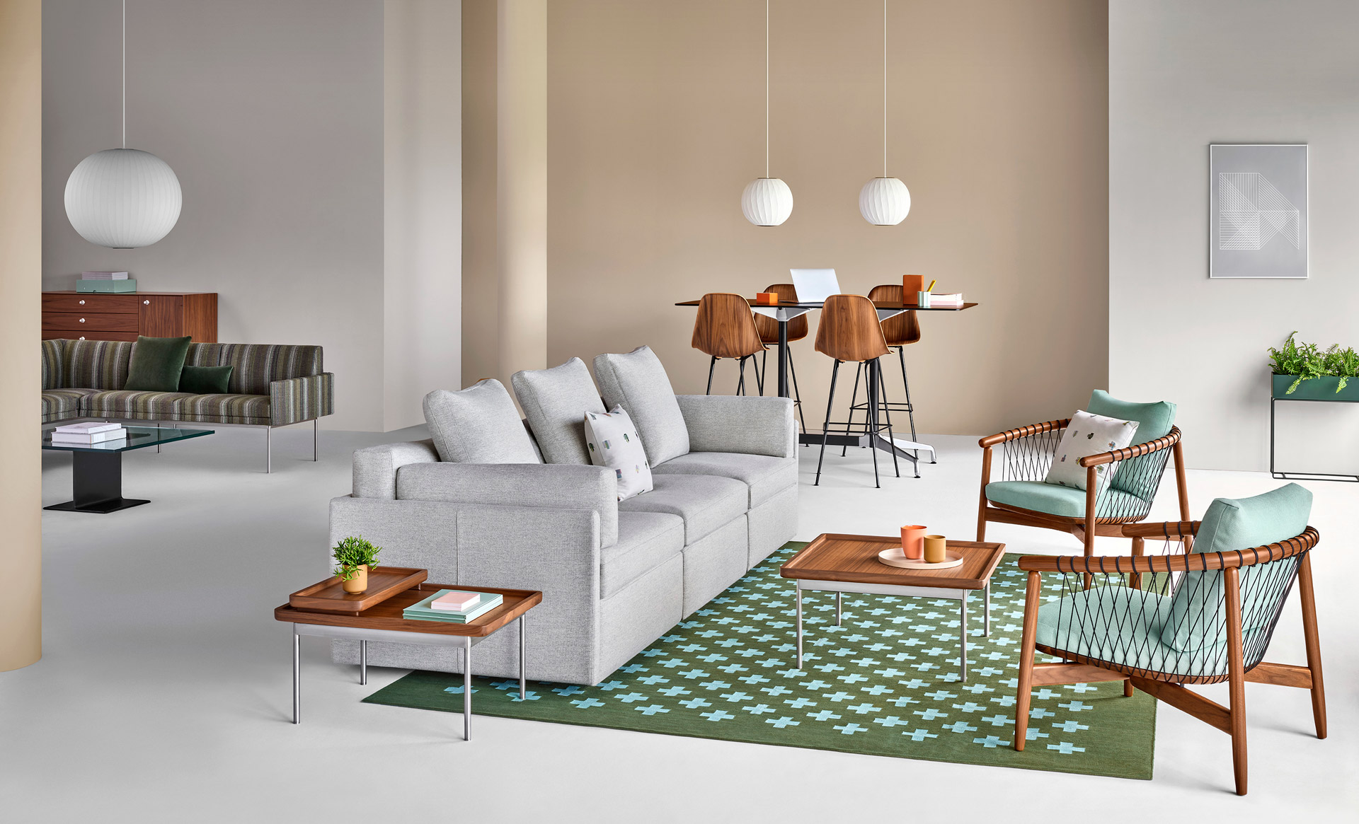 Atractiva y suave con un toque de elegancia, la sillería lounge Module de BassamFellows ofrece una solución de sillería modular que consolida cómodamente espacios de cualquier tamaño. Con proporciones a escala humana y una simplicidad de líneas y detalles, sus diversos componentes se combinan para crear diseños duraderos que coordinan fácilmente con el mobiliario clásico de Herman Miller.