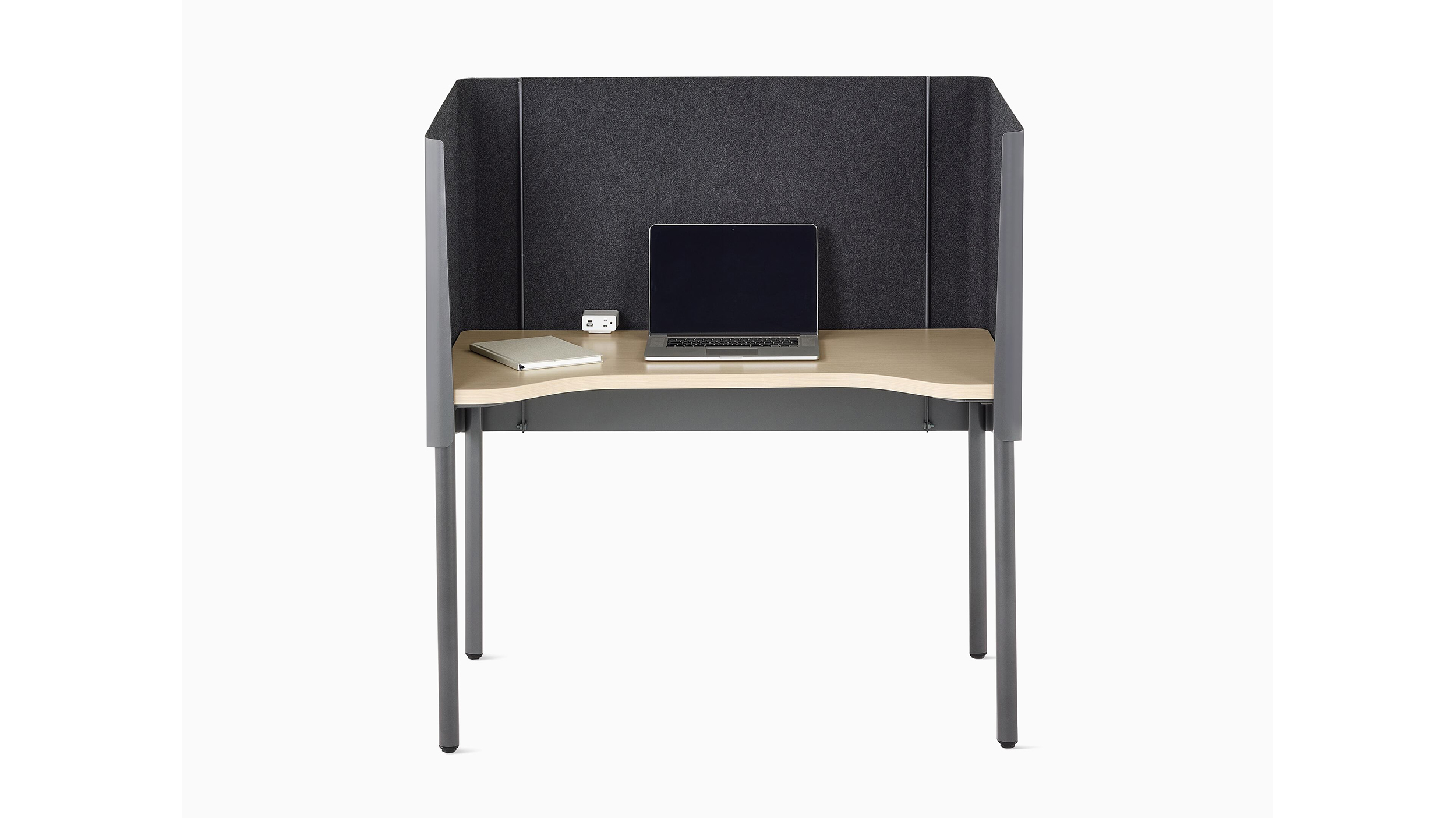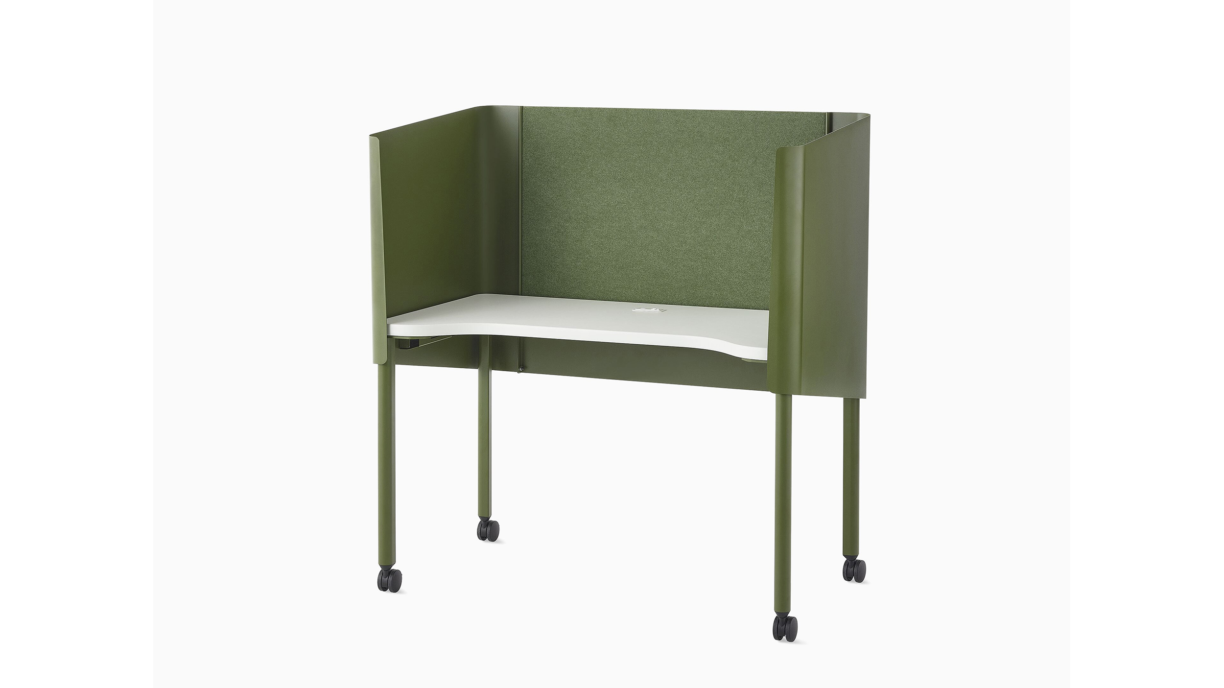 El esquinero OE1 es una estación de trabajo individual con privacidad visual y acústica para fomentar la concentración y la productividad. Parte de la Colección espacio de trabajo OE1.
