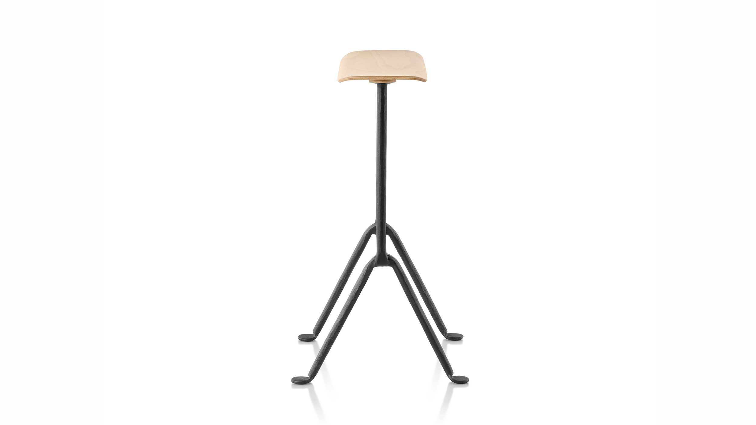 Con el taburete Officina, los diseñadores Ronan y Erwan Bouroullec toman el antiguo arte del forjado en hierro y crean un lenguaje material que se adapta al momento actual. Las patas de hierro forjado se entrelazan en una construcción sólida al tiempo que proyectan un fino equilibro y una presencia minimalista. Se combinan con un asiento de polipropileno disponible en diversos colores para adaptarse a una variedad de interiores contemporáneos.