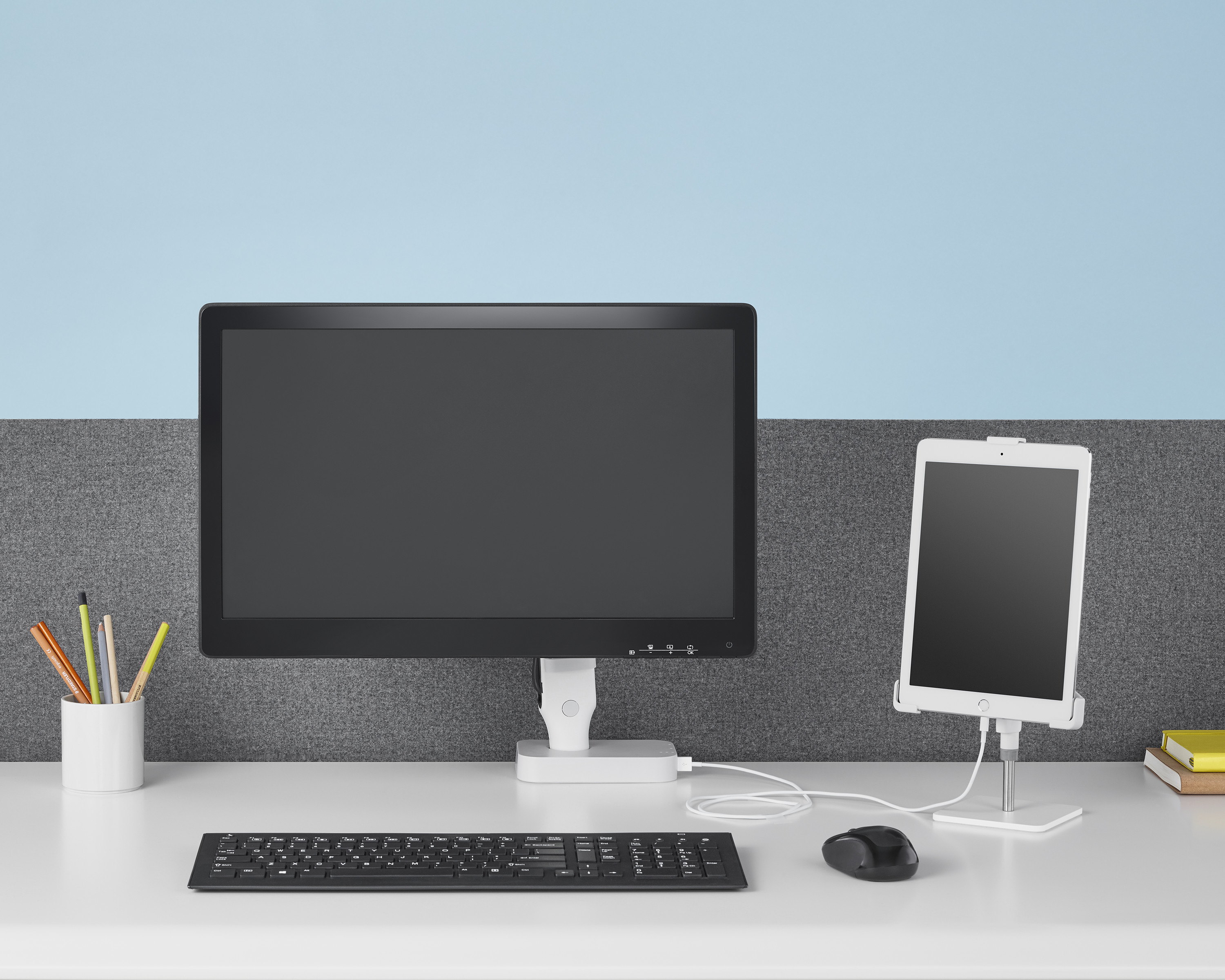 A medida que la tecnología avanza, los dispositivos se vuelven más livianos y más compactos. El brazo articulado para monitor Ollin le permite soportar diversos monitores y computadoras portátiles de varios tamaños. El brazo tiene una gran amplitud de movimiento y esto le permite colocar los monitores y dispositivos donde los prefiera, fomentando una postura más saludable ya sea de pie o sentado.