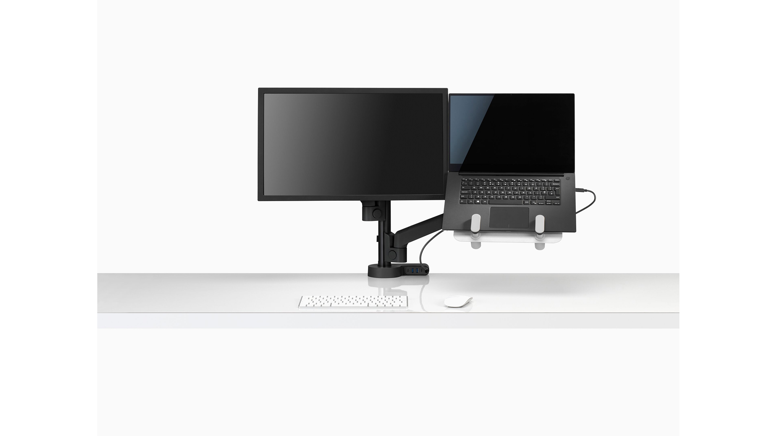 Diseñado para un fácil ajuste a la base del brazo articulado para monitor Flo, Ollin o Lima, el módulo de conectividad Ondo sirve para crear una estética de escritorio despejada y minimalista, agrupando y dirigiendo los cables hasta una estación de acoplamiento debajo del escritorio (no incluida). Ondo accede a la energía desde la estación de acoplamiento para ofrecer una forma conveniente de conexión y carga a sus dispositivos sobre el escritorio.