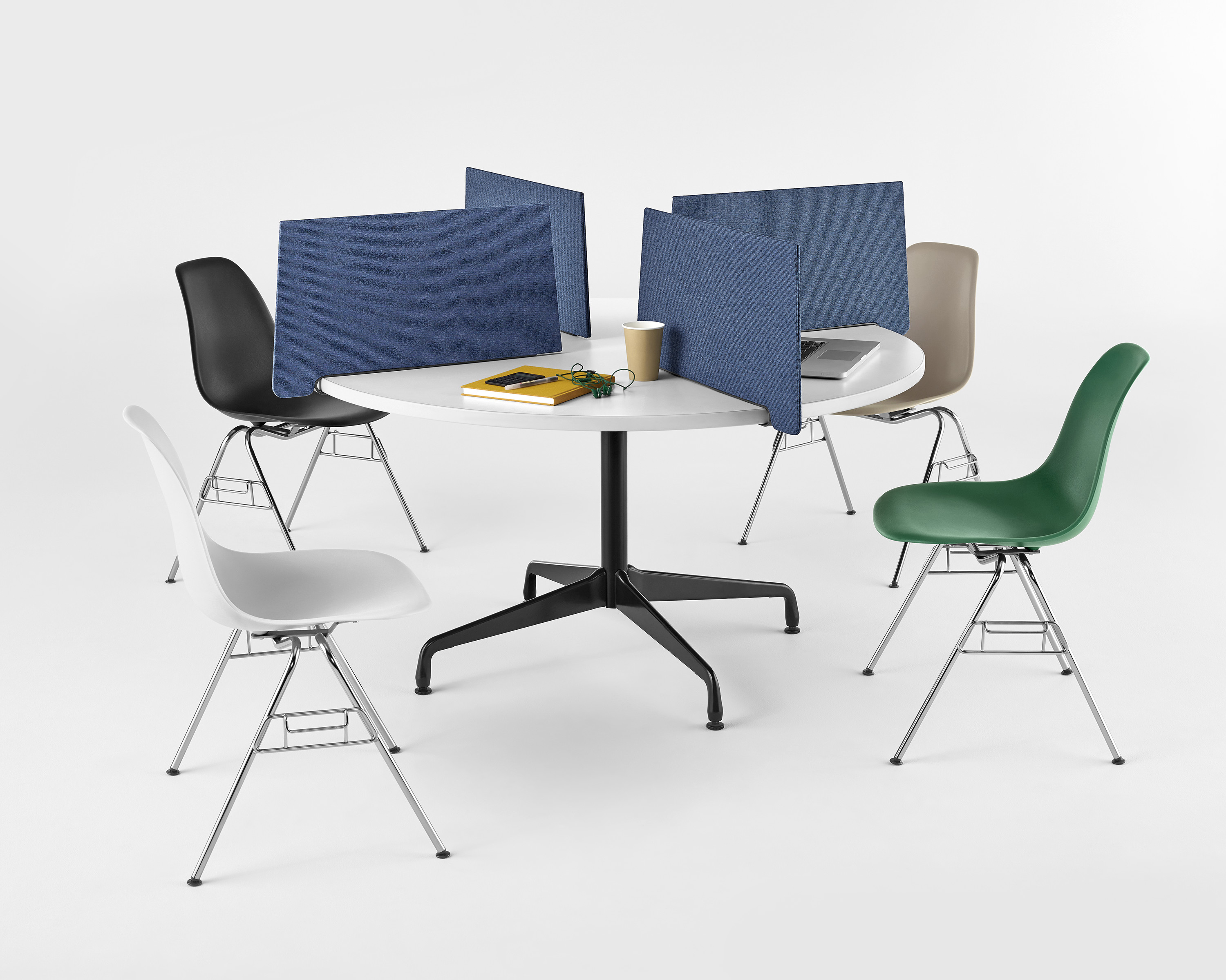 En equilibrio entre lo abierto y lo exclusivo, la pantalla lateral Personal ofrece una forma fácil y atractiva de delimitar áreas de trabajo individuales dentro de una superficie de trabajo más grande y compartida.