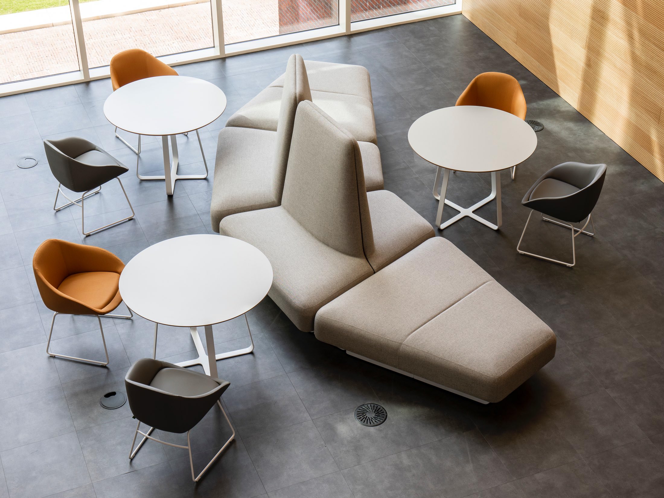 La sillería modular Rhyme puede usarse para crear islas esculturales de sillería o transformar un espacio abierto en zonas ad hoc. Su geometría orgánica y su estética casi topográfica convierten a este sistema de sillería tapizada en una elección que se destaca. Cada una de las piezas modulares tiene la misma superficie trapezoidal para permitir una planificación sencilla. Disponible en alturas bajas o estándar.