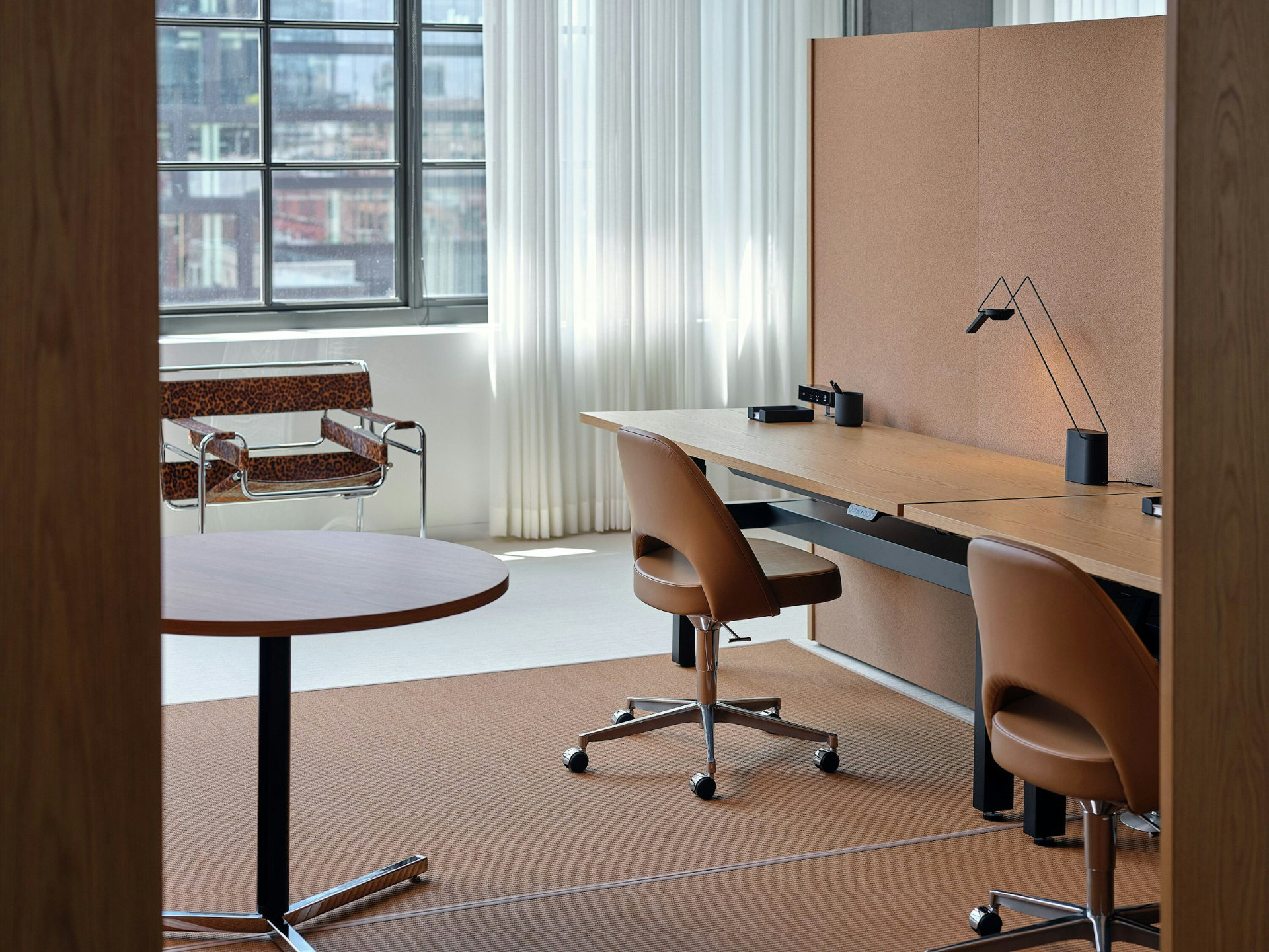 Siéntese y relájese con el sillón ejecutivo Saarinen. El diseño icónico combina la comodidad excepcional de la forma escultural de Eero Saarinen con una base giratoria de alto rendimiento, regulable en altura e inclinación ajustable según el peso. El diseño atemporal y versátil sigue adaptándose perfectamente a espacios de trabajo, conferencias y reuniones con cualquier decoración.