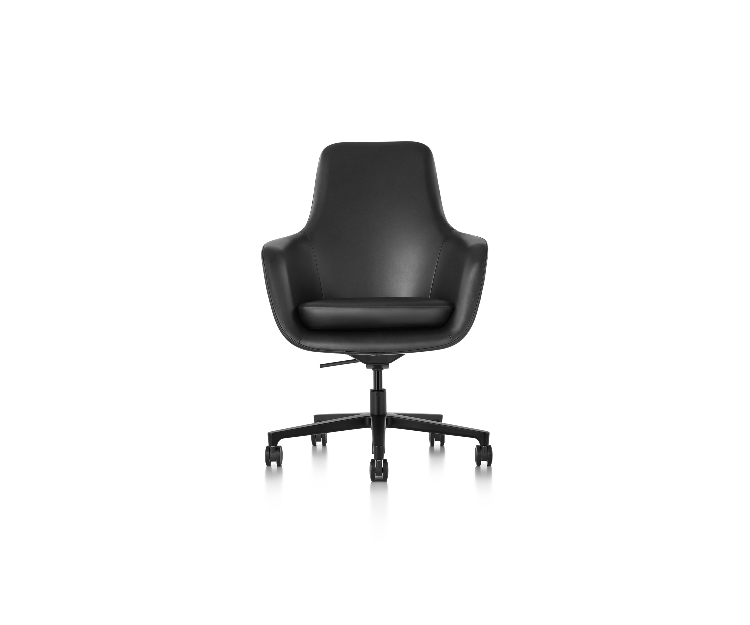 Saiba está disponible con el respaldo medio o alto, como silla lounge de altura fija con una base de estrella de cuatro puntas, o como una silla ejecutiva de altura ajustable con una base de estrella de cinco puntas y ruedas giratorias. Su impecable confección, una paleta sofisticada de telas y una base pulida o negra contribuyen a su elegancia atemporal.